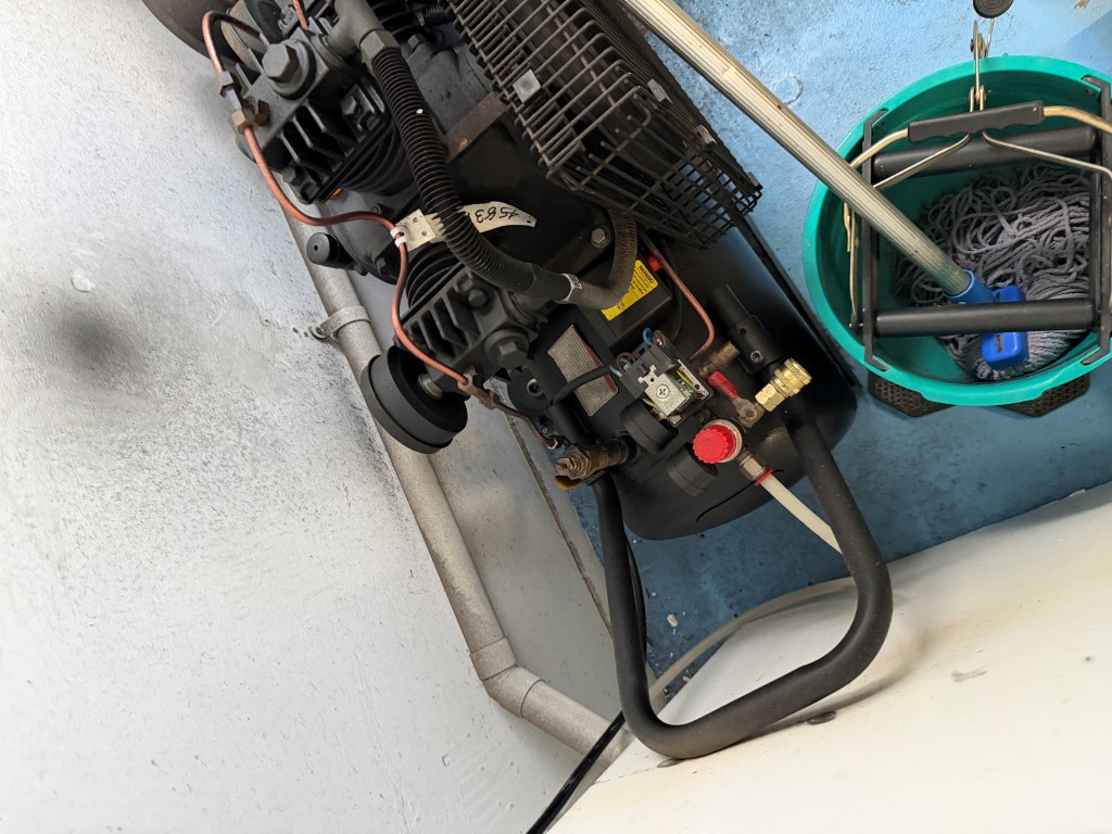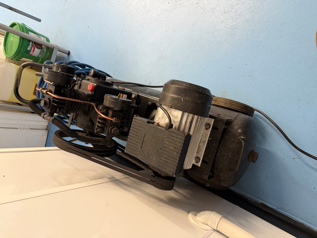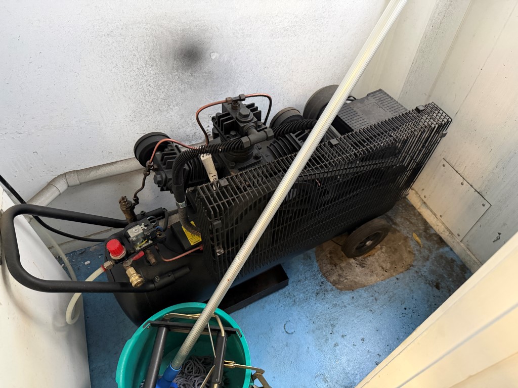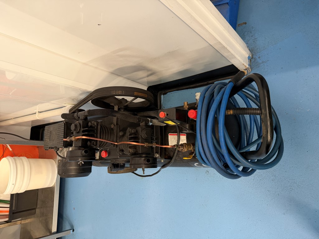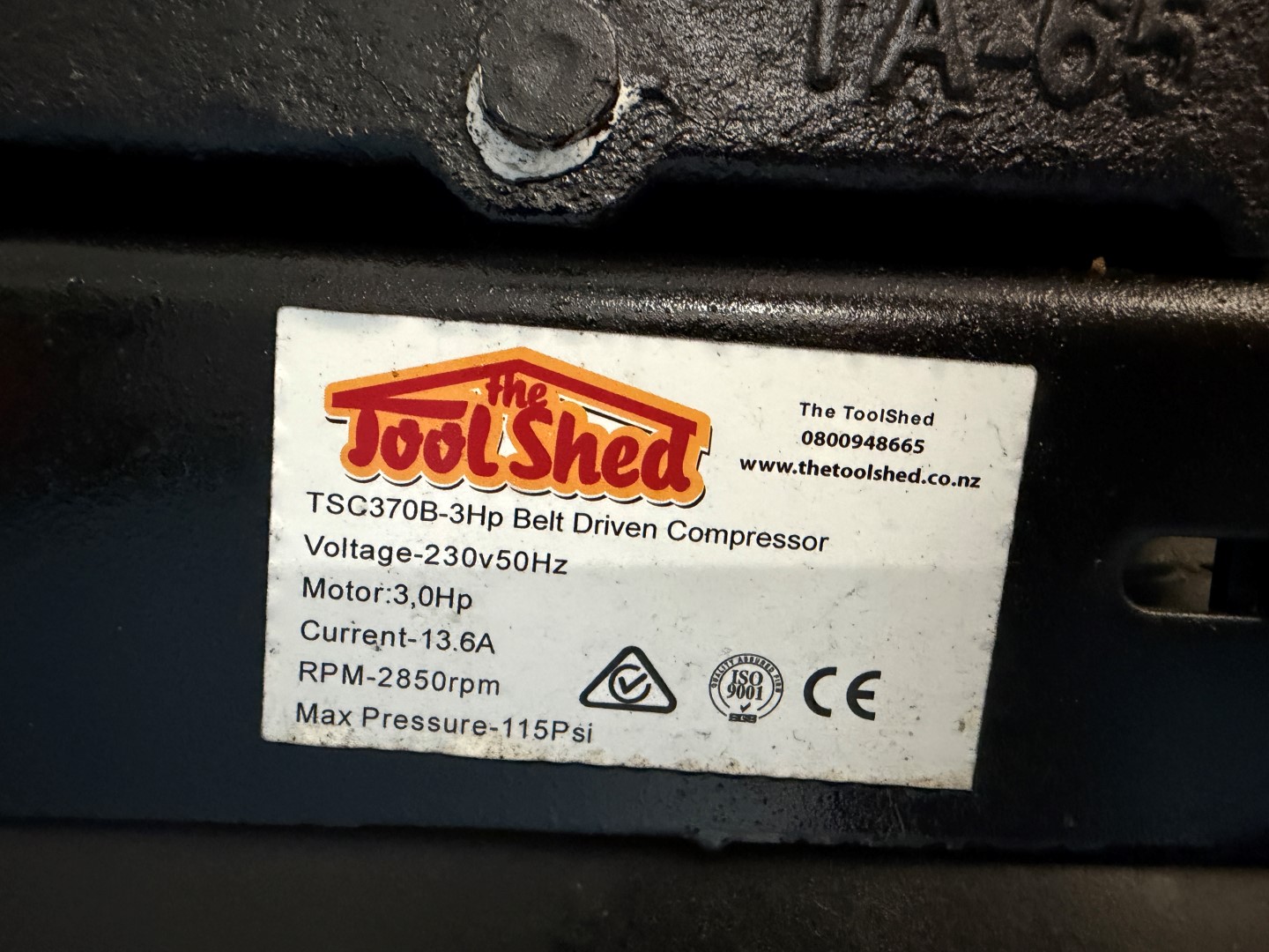 2 x TSC370B-3Hp Air Compressors from The Tool Shed, single phase, 3hp, 13.6amps, 2850rpm, belt driven, max pressure 115Psi. One unit is missing the belt guard. Not available until approx. end of April 2026.