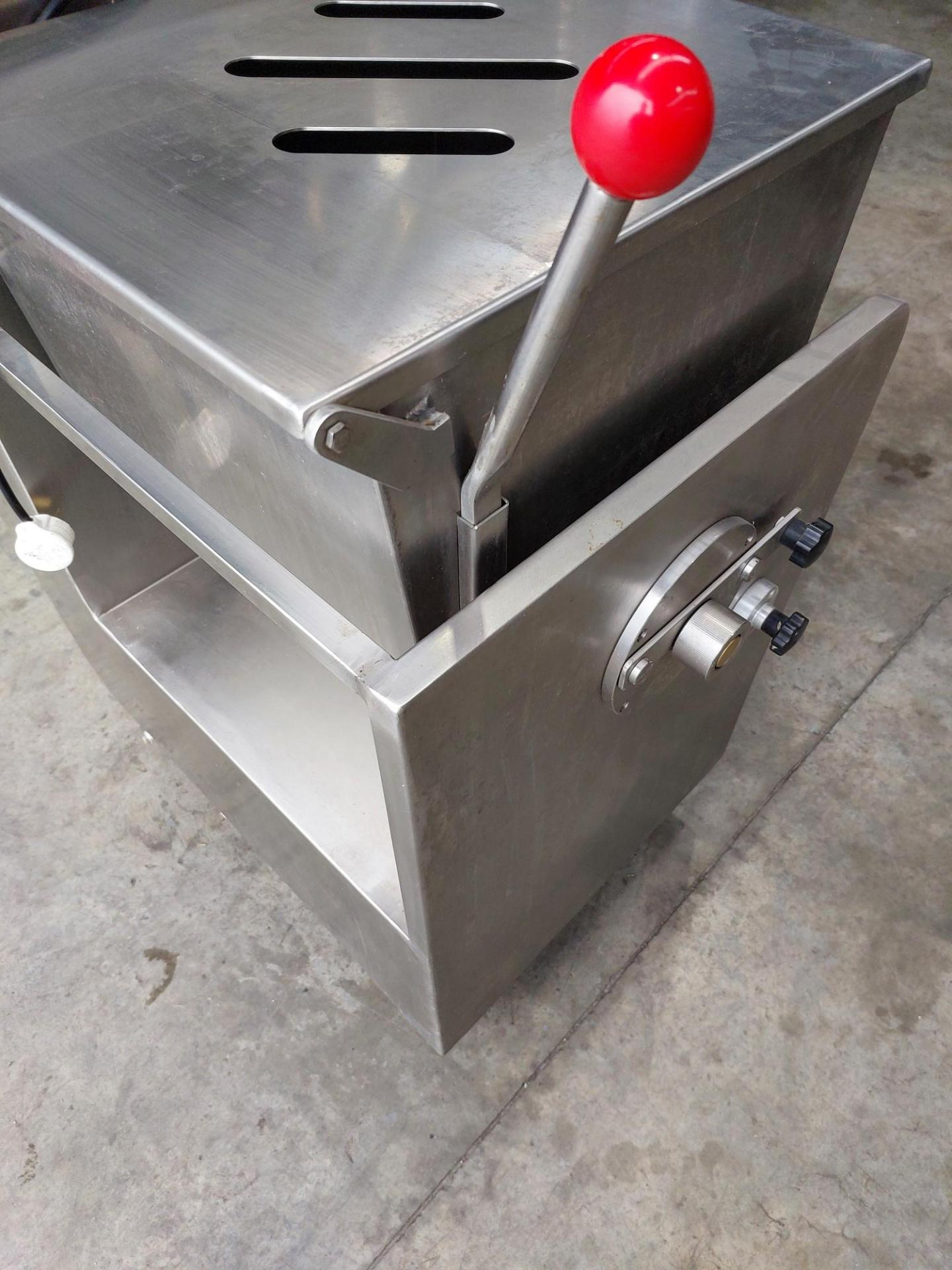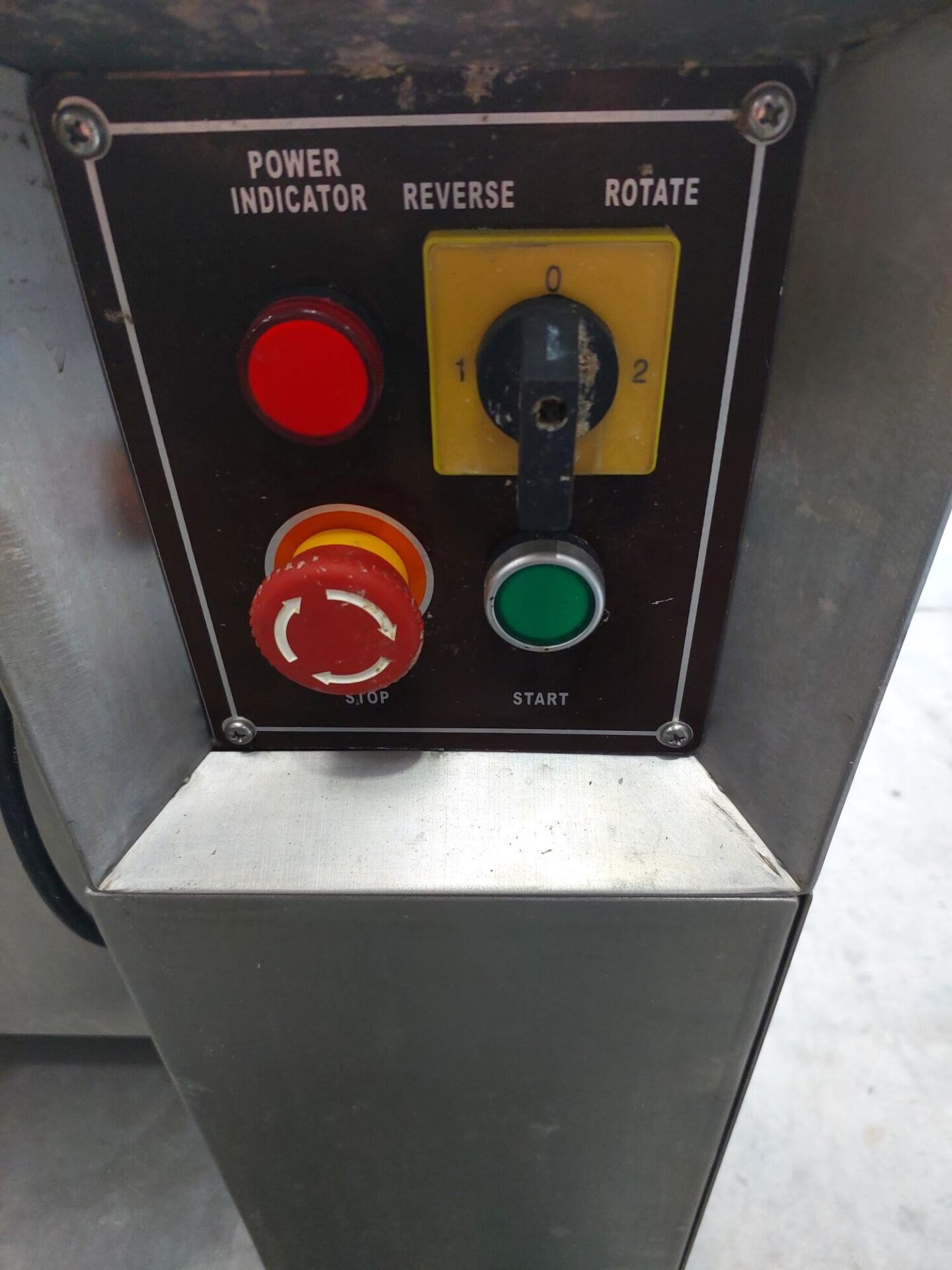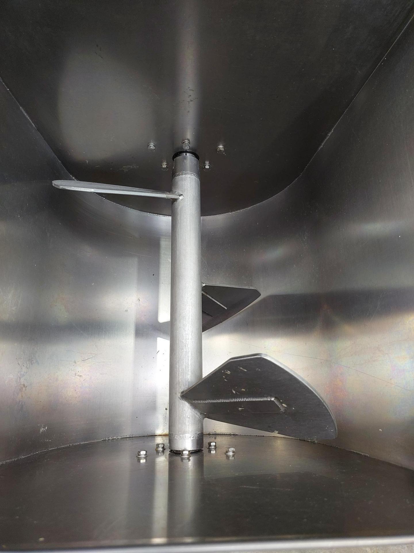 Paddle Blender, single phase, stainless steel, forward/reverse/start/e-stop controls, on wheels, tilting discharge.