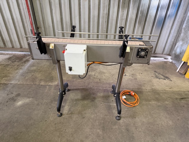 Speed Band Bread Slicer, 3 ph, pneumatic, set up for 14mm standard slice. Rebuilt with automatic top and bottom motor driven belts for fast volume infeed. Top belt is adjustable up and down to suit various bread heights. Motor driven outfeed belt with optic sensor to read missing loaf. All new electrics with safety relay for the 2 x door proximity safety switches and end conveyor removed safety proximity switch. Comes with a free set of brand new blades. Whole machine is mounted on heavy duty mobile dolly.