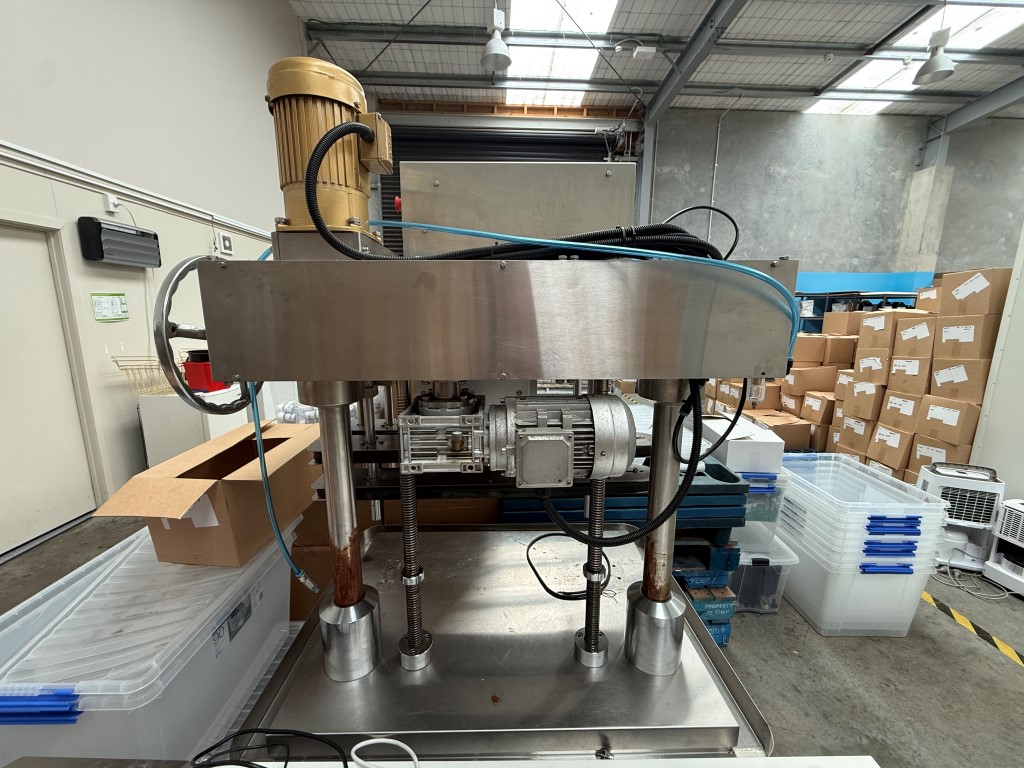 FXZ-A Automatic Capping Machine, YOM 2019, inline style, designed to sit over conveyor belt (conveyor not included), plastic screw cap sizes approx. 20-50mm, single phase, pneumatic, adjustable height, adjustable speed.
