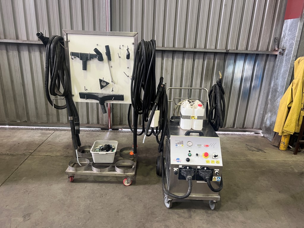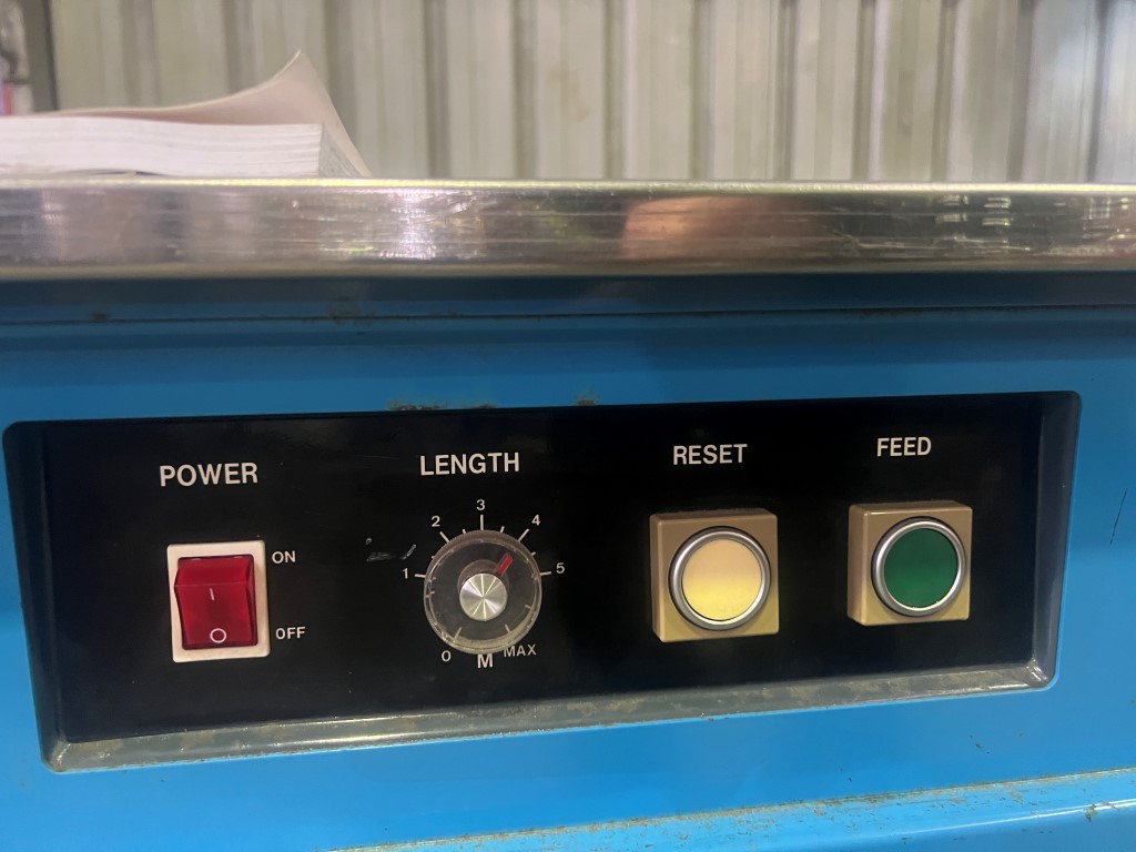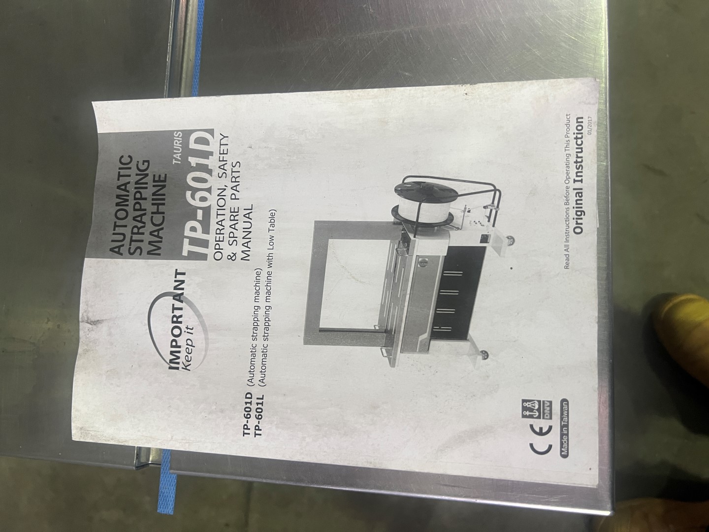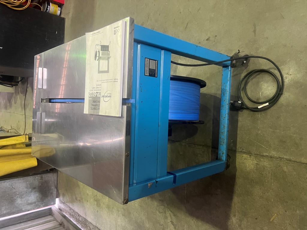Tekpak TP202 Carton Strapper, single phase, stainless steel top, on wheels.