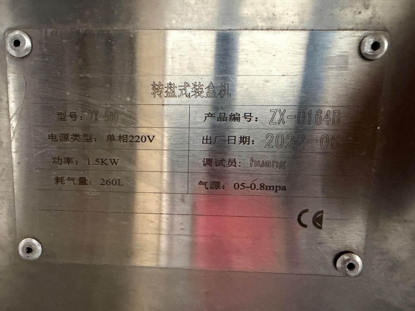 ZX-500 Cartoner, YOM 2022, single phase, pneumatic, Siemens touch screen, on feet and wheels, interlocks on guarding, previously used for soap going into individual cartons.