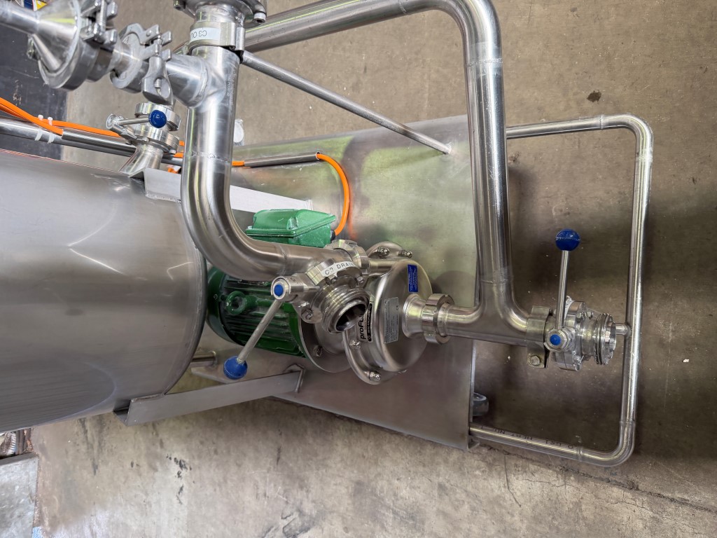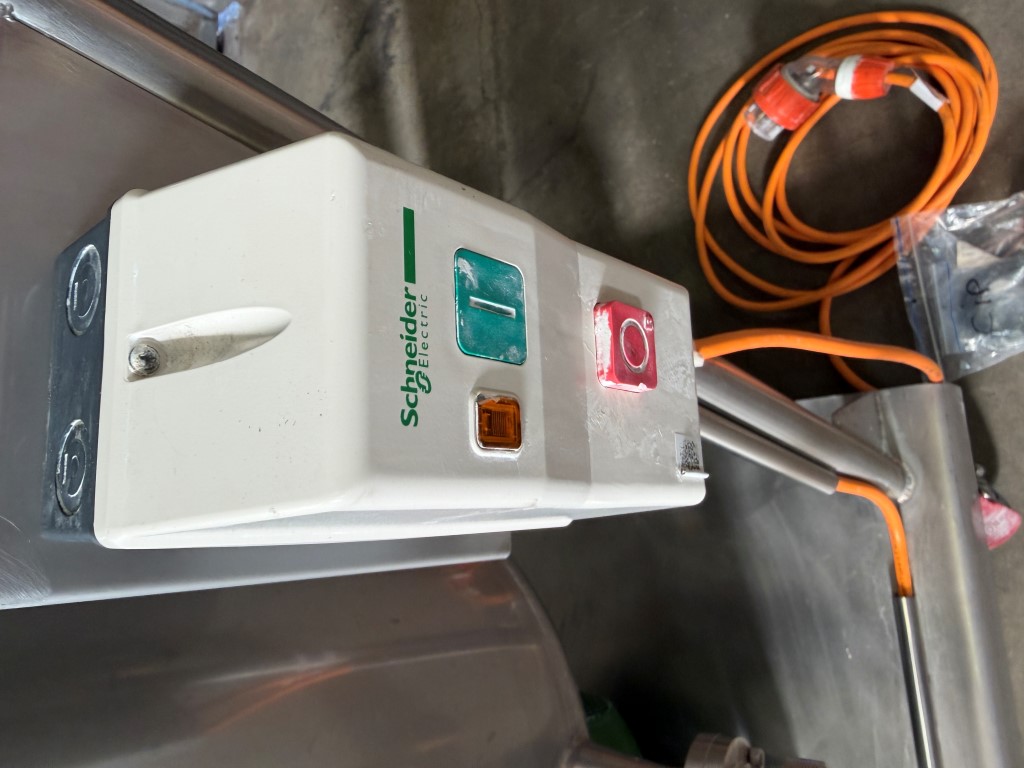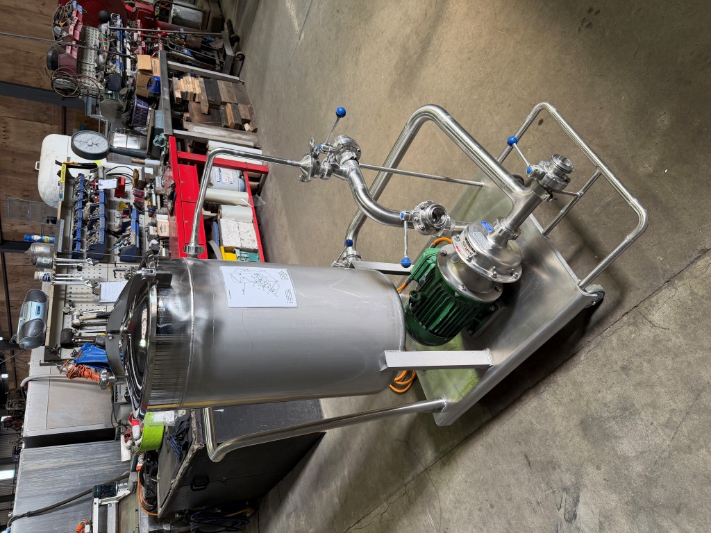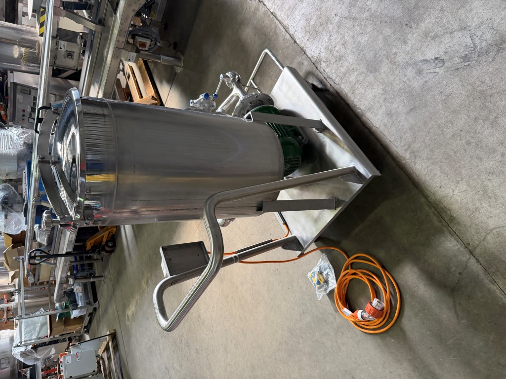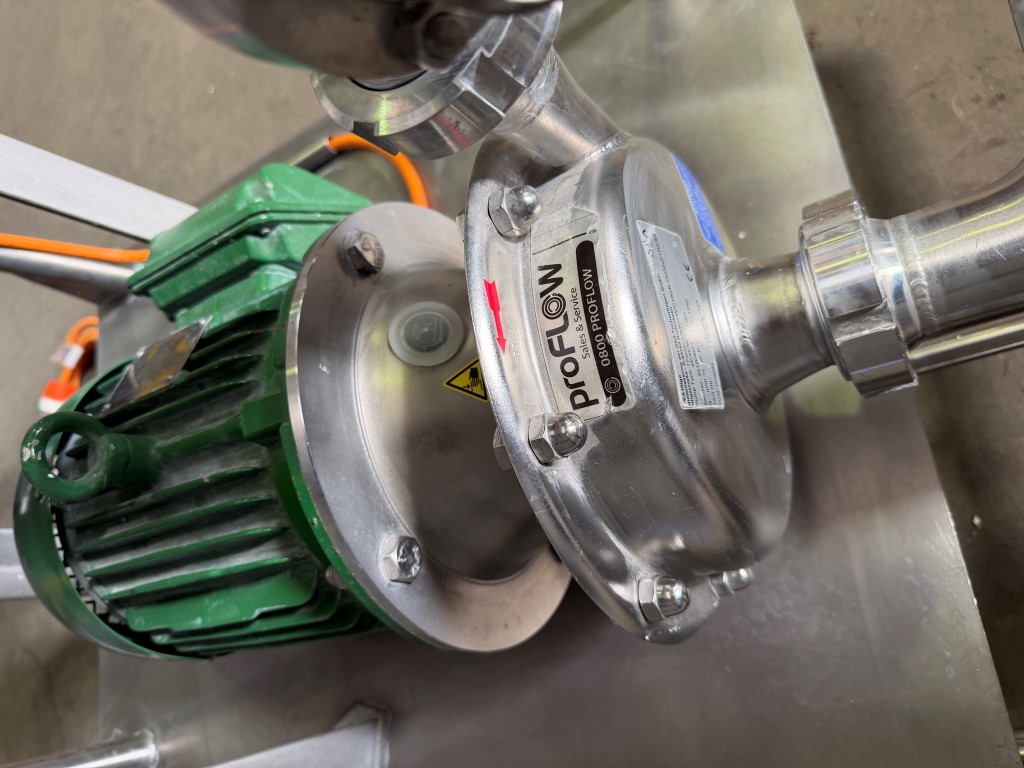 CIP System, Stainless Steel, mobile frame, 3 ph, 16amp 4 pin plug, GEA Centrifugal Pump, 4kw, 2890rpm, tank is approx. 110L. Used as a mobile CIP system to clean tanks, mixers etc. Comes with some spare seals.