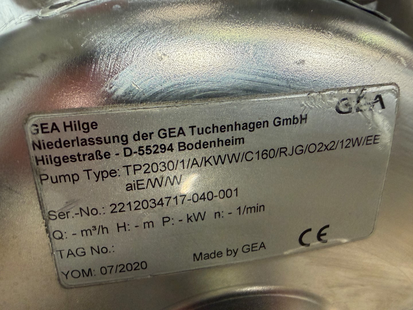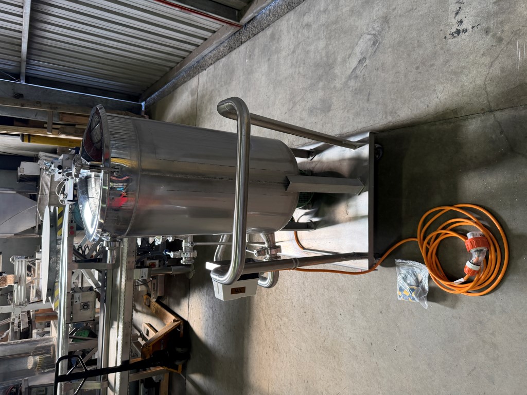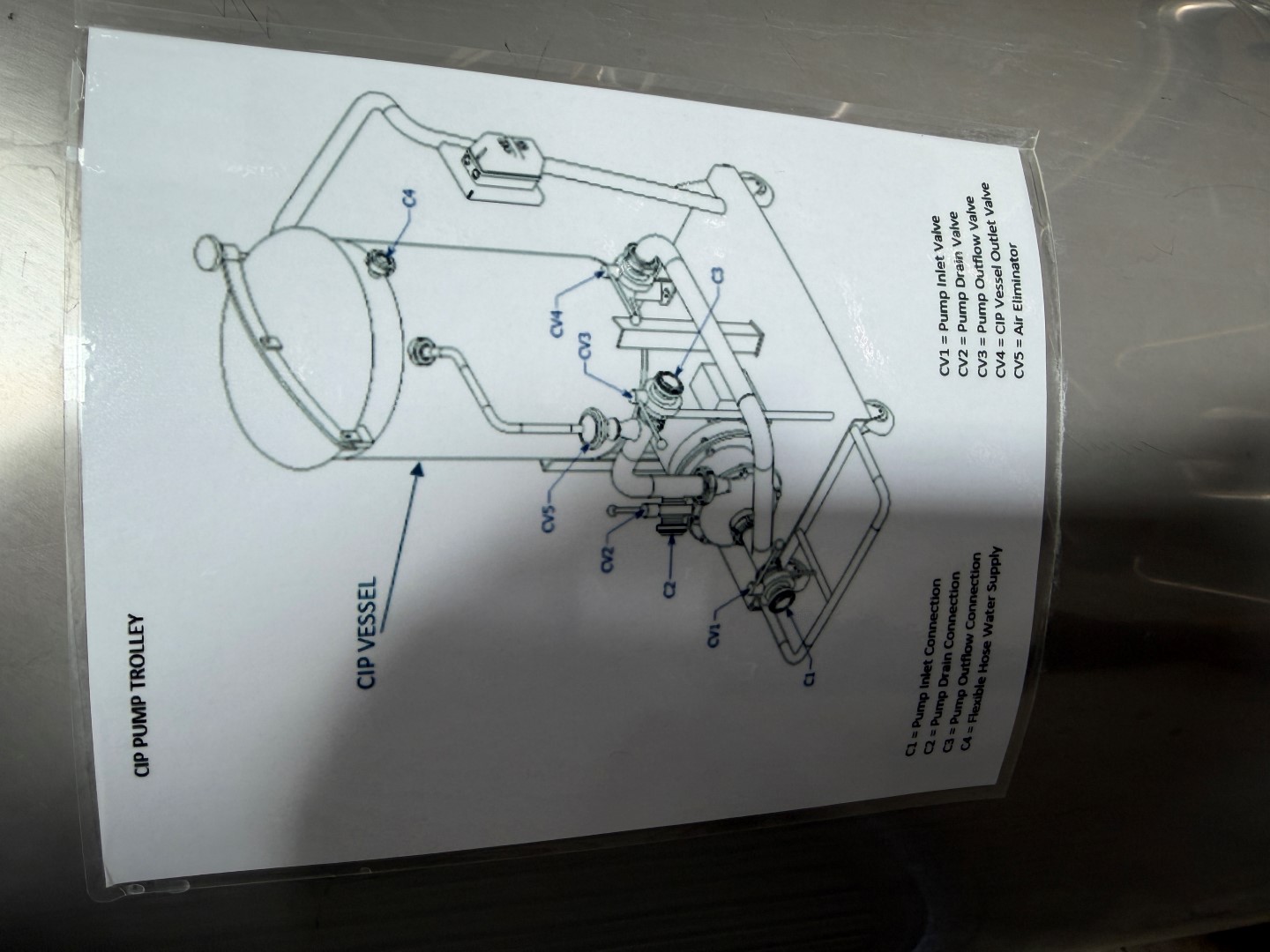 CIP System, Stainless Steel, mobile frame, 3 ph, 16amp 4 pin plug, GEA Centrifugal Pump, 4kw, 2890rpm, tank is approx. 110L. Used as a mobile CIP system to clean tanks, mixers etc. Comes with some spare seals.