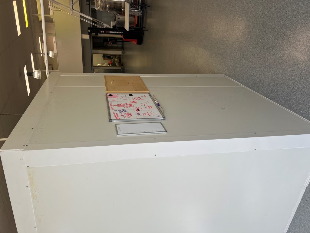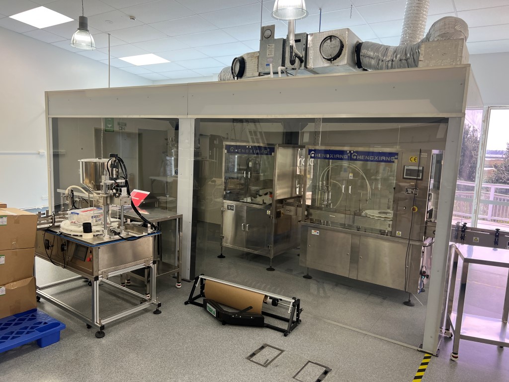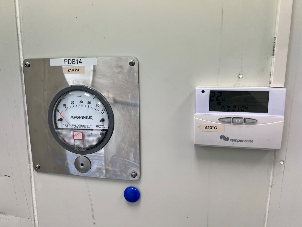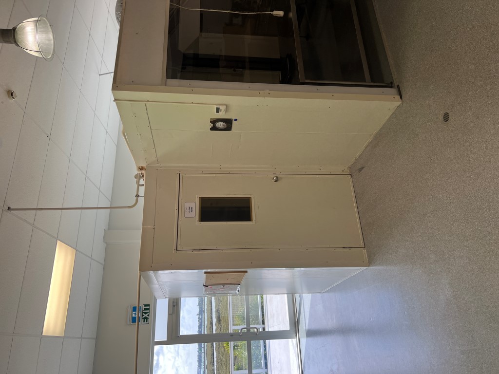 Clean Room, made from Polypanel, Glass and steel frame, does not have floor (sits on top of building floor). Is temperature controlled and has lighting and power sockets. Int dims approx. 5950mm x 2960mm x 2243mm H (excludes entrance section). Room height unit is installed in is approx. 4m. Will need to be dismantled for removal and transport.