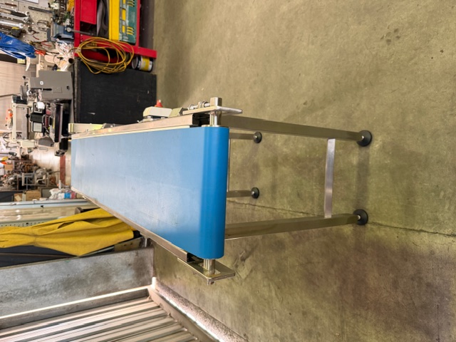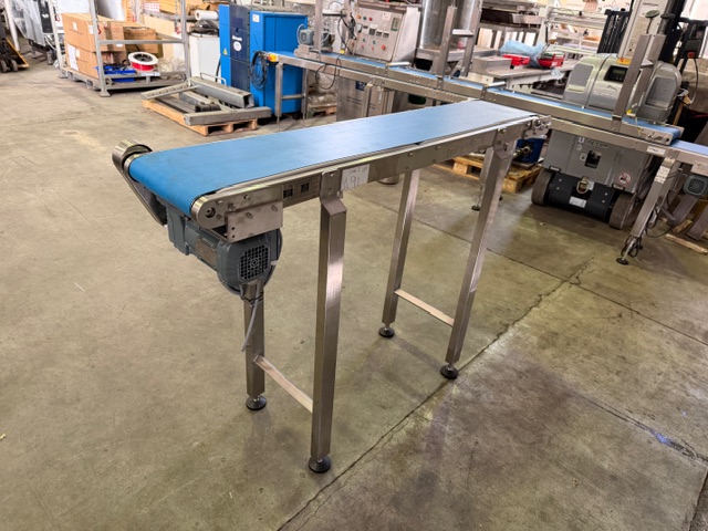 Joyo Belt Conveyor, 3 ph, SEW Eurodrive 0.37kw motor, missing chain, stainless steel frame, PU belt.