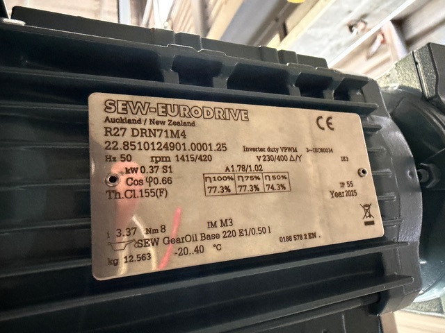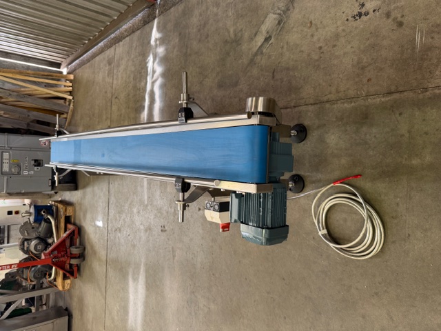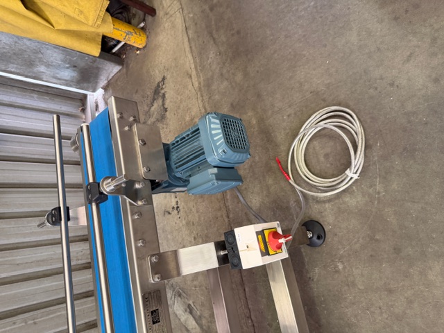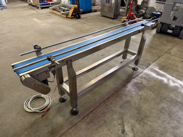 Joyo Belt Conveyor, 3 ph, SEW Eurodrive 0.37kw motor, stainless steel frame, PU belt, guide rails.