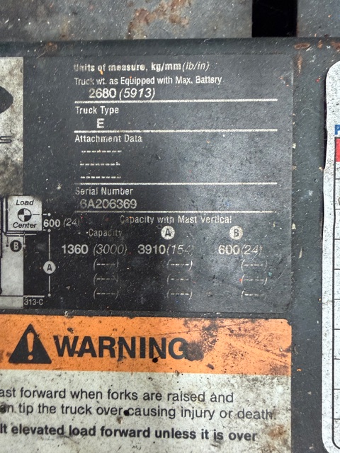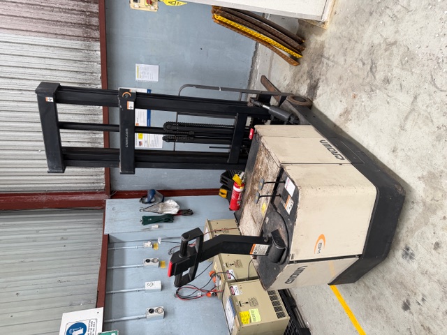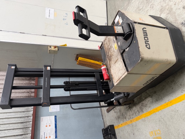 Crown Type E Walk Behind Forklift, electric, capacity 1360kg at 600mm load centre, mast height 3910mm. Works well.