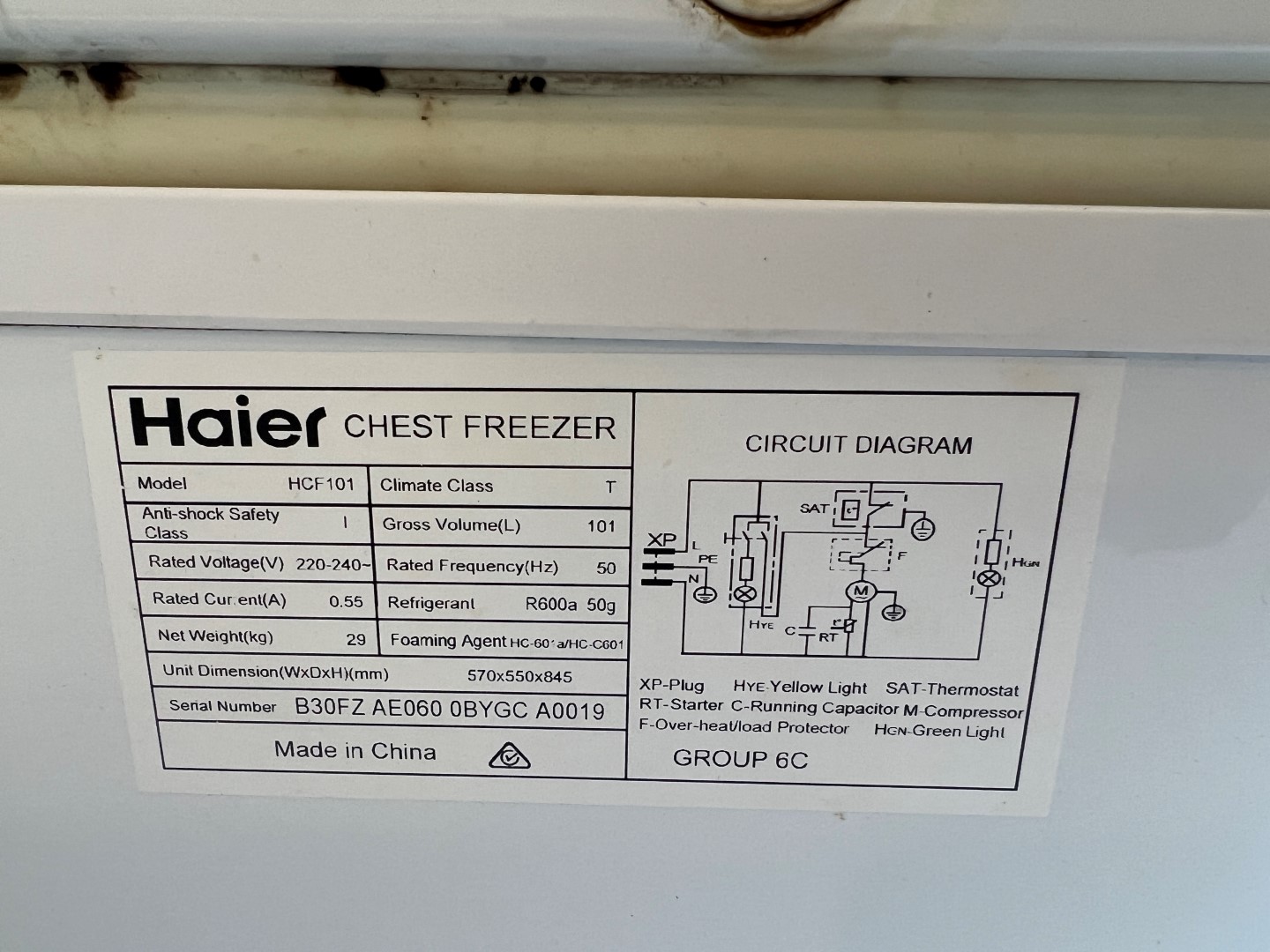 Haier HCF101 Chest Freezer, single phase, gross volume 101L.