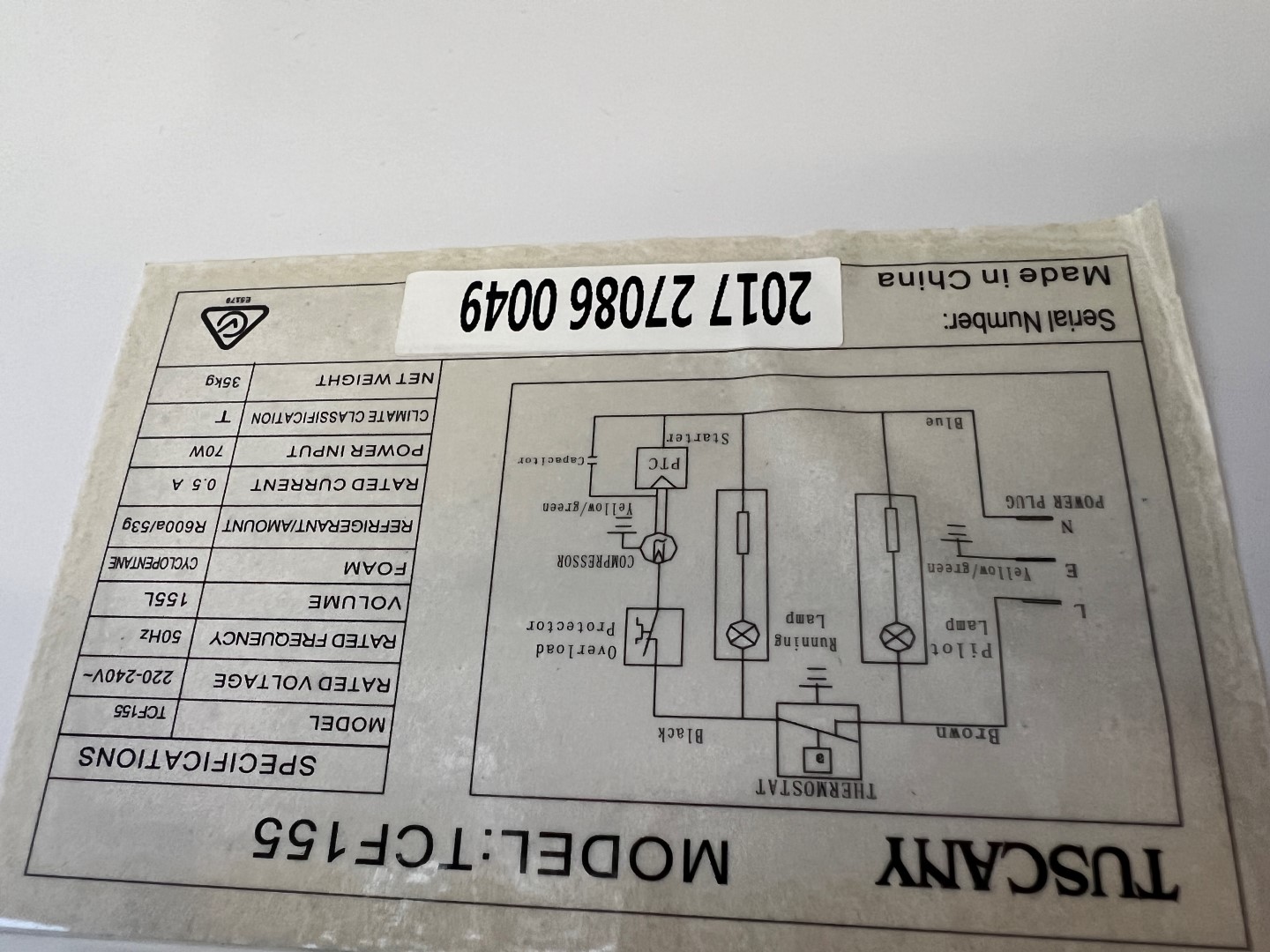 Tuscany TCF155 Chest Freezer, single phase, gross volume 155L.