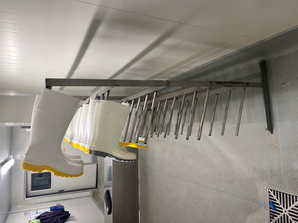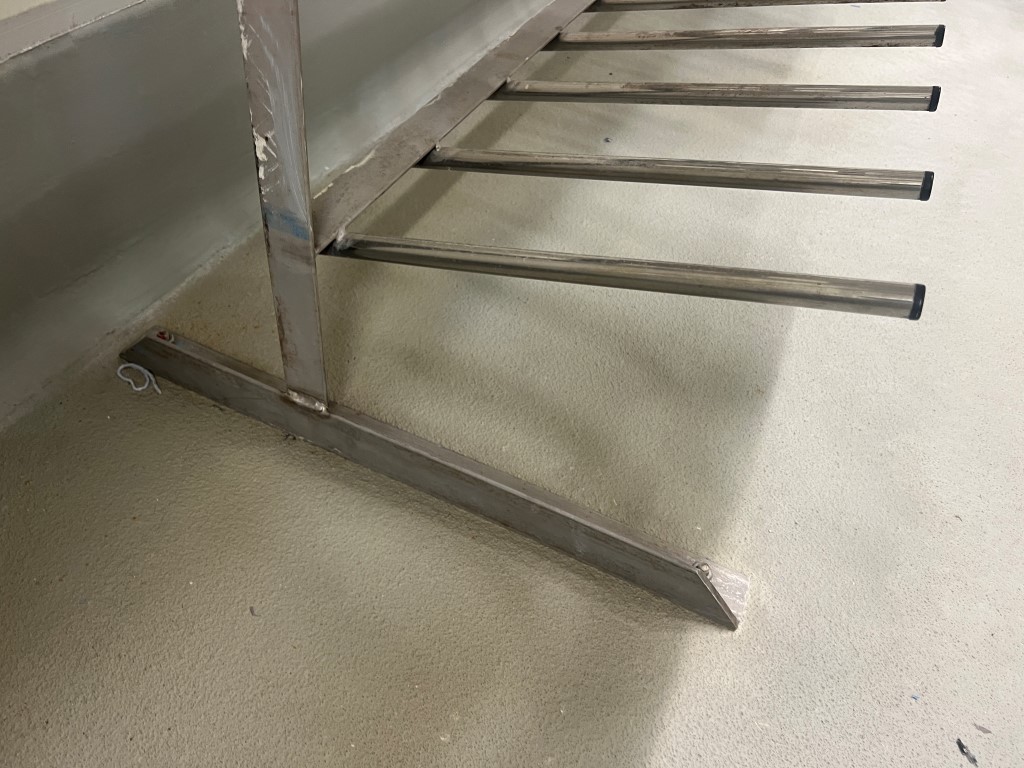 Gumboot Rack, stainless steel, rods for 68 gumboots.