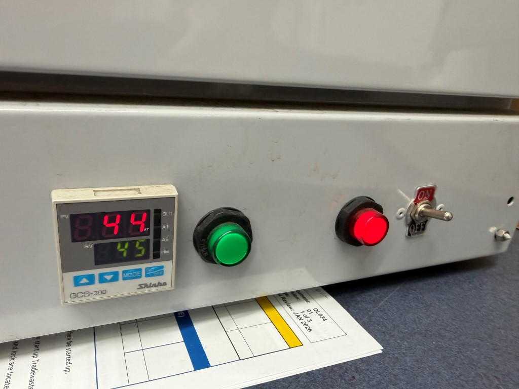 Wilton Utility Incubator, single phase, bench top, was run at 45 °C. Available from second half of February 2026.
