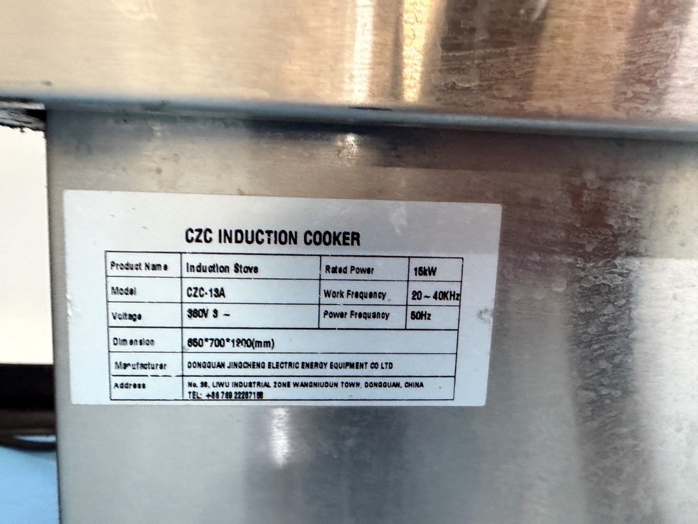 2 x CZC-13A Induction Cookers each with a stainless steel pot, 3 ph, 15kw. Not available until approx. end of April 2026.