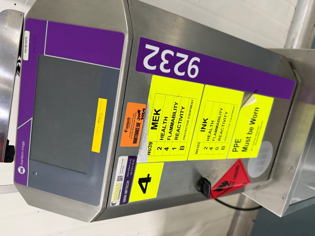 3 x Markem-Imaje Ink Jet Printers, 1 is a 9232 (YOM 2015) and the other 2 are 9028’s (YOM 2014), single phase, on wheels, black ink, for printing batch codes, expiry date, logo etc. Will need a service as they have not been used for 6-12 months. Vendor shutdown units and put additive in them. Available from second half of February 2026.