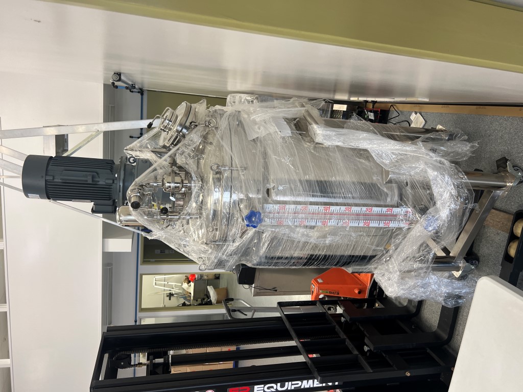 Jacketed Pan/Tank, stainless steel, requires heat source (steam boiler) for heating jacket, 3 ph scrape surface mixer, on mobile frame, lidded (bolted down) with interlocks, pan approx. 900mm x 900mm.