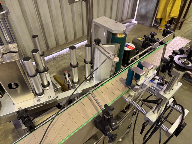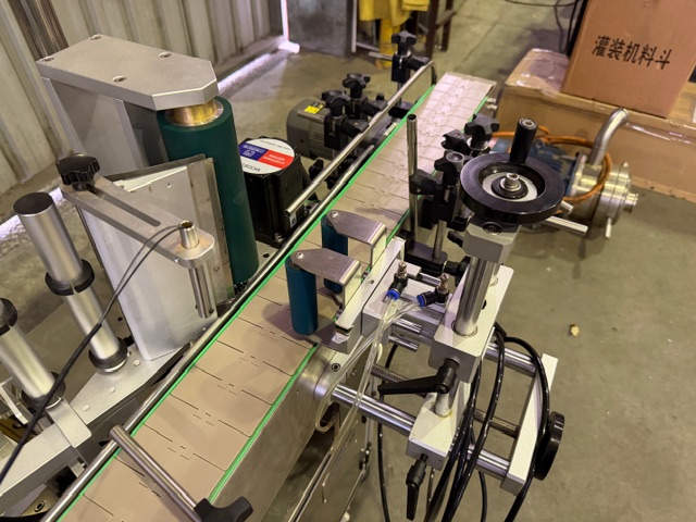 Gosumn GS-T212 Automatic Labeller for single self adhesive labels onto round bottles/containers, YOM 2018, single phase, pneumatic wrap around unit, conveyorised, touch screen controls. Further info: https://gaozhen8888.en.made-in-china.com/product/rwVAbTJcOGlh/China-Gosunm-GS-T212-High-Speed-Labelling-Machine-for-Round-Bottles.html.