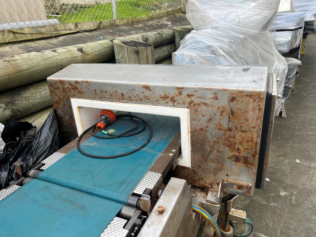 Metal Detector/Check Weigher Combo, Metal Detector is a Fortress Phantom and the Check Weigher is a FINE FAC-5500, single phase, conveyorized, detector aperture approx. 400mm x 110mm H, weigh belt approx. 575mm L x 300mm W. Has surface rust as unit has been used in a wet product environment. 2 units available.