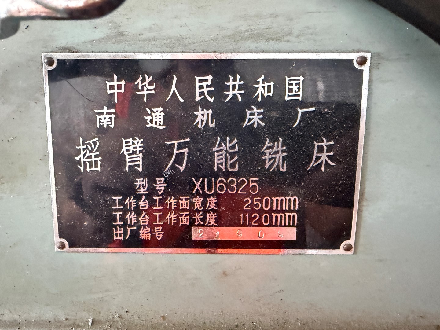Nantong XU6325 Radial Universal Milling Machine, 3 ph, working surface width 250mm, working surface length 1120mm.