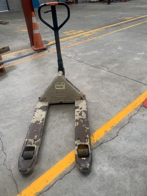 BT Lifter Pallet Jack, long forks, 2000kg capacity, available end of April 2026.