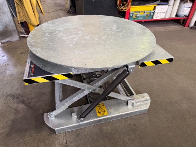 Astrolift LTP-AST-005 Pallet Leveller / Turntable, new and unused, galvanised, spring loaded, forklift lift holes for moving, 2000kg capacity, lift height 250-700mm, turntable Ø 1120mm.