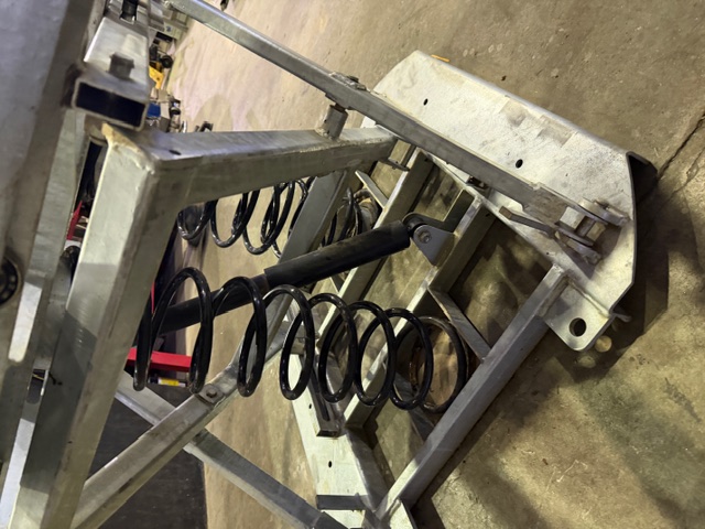 2 x Pallet Levellers, spring loaded, rotating turntable, galvanised steel, forklift lifting holes. A pallet leveller is a self-adjusting platform that automatically raises or lowers a pallet to maintain an ergonomic working height for loading and unloading.