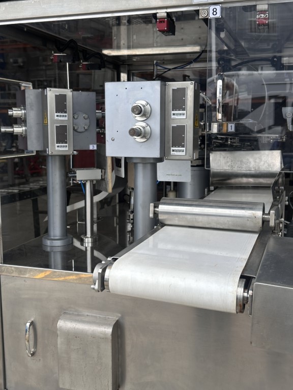 Qingdao Yilong Packaging Machinery YL-8 S W Rotary Liquid Pouch Filler, YOM 2016, 8 station unit, was doing 140mm W x 200mm L bags with 250g of honey.