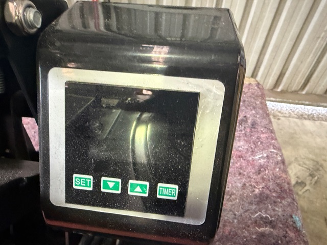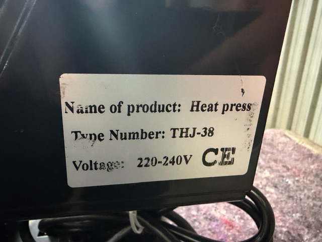 THJ-38 Heated Press, single phase, temperature controller, press area 380mm x 380mm, manual handle to pull down. Was used to press/cut out shapes from dough.