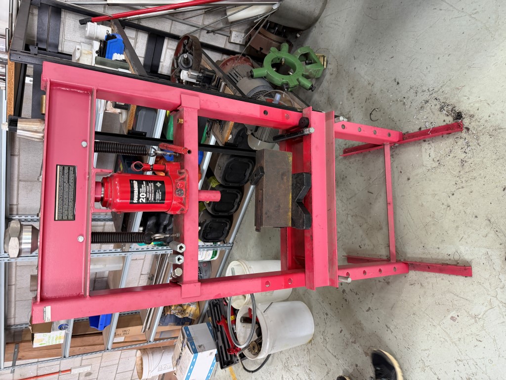 Powerbuilt 20T Shop Press, hydraulic, painted steel frame.