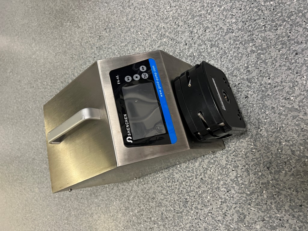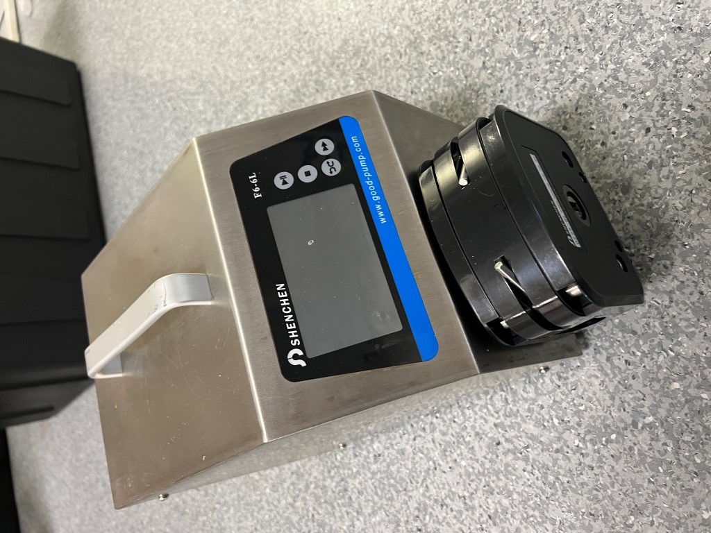 Shenchen F6-6L Peristaltic Pump, DZ25-6L pump head for #15, #24, 35# and #36 tubing, single phase, no lead and plug. Further info: https://www.labdirect.com.au/f6-series-dosing-peristaltic-pump-with-dz25-6l-head-3-6000ml-min-max-f6-6l/.