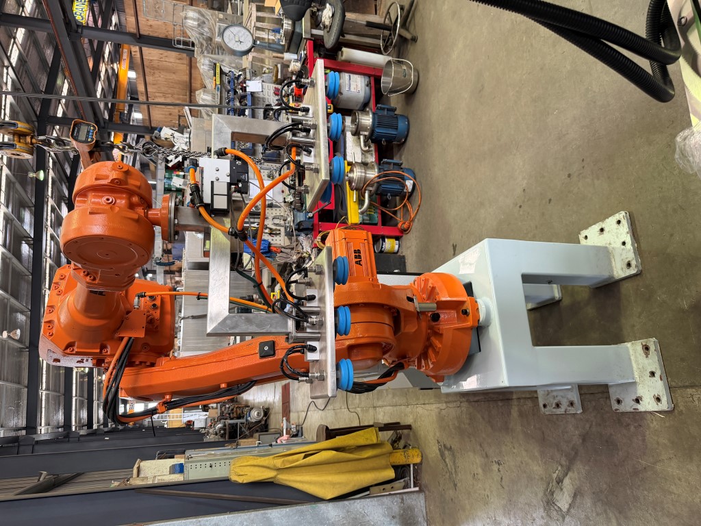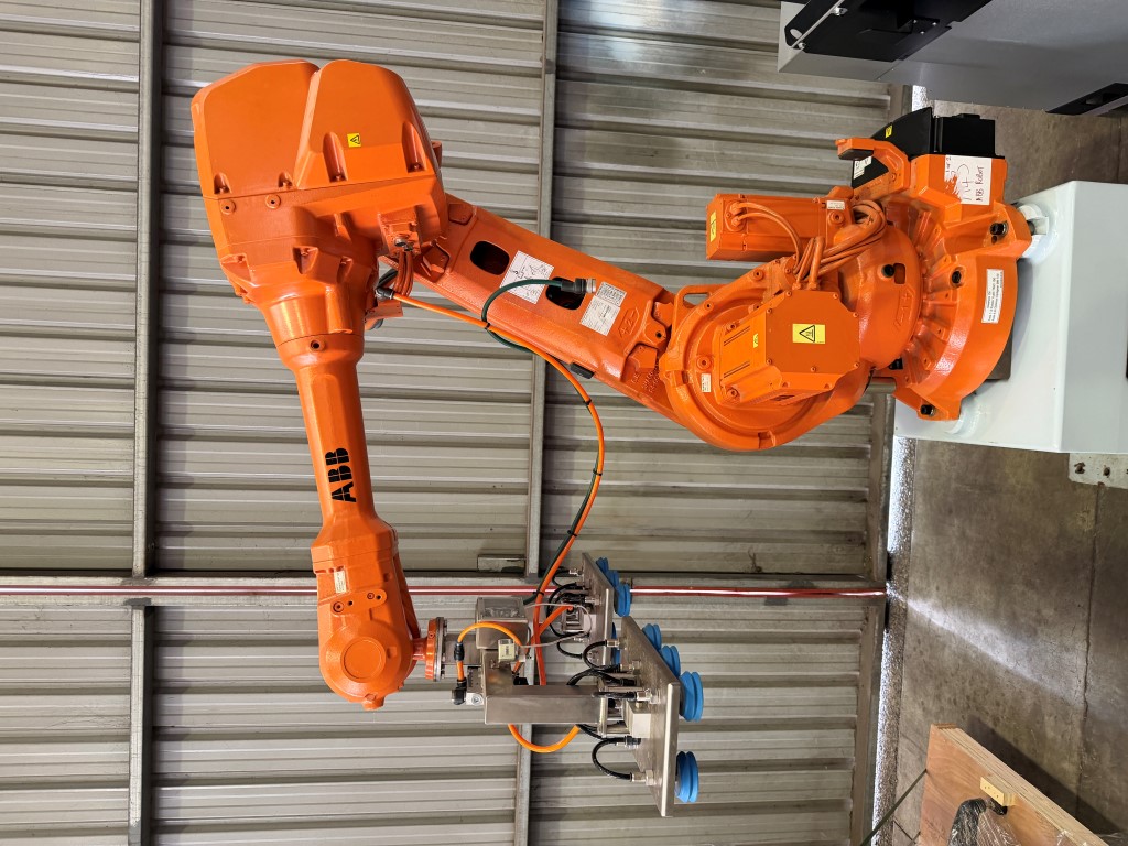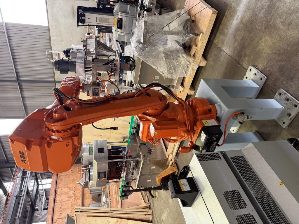ABB IRB 4600 6-axis Robotic Packer, YOM 2017, unused (never installed), 3 ph, pneumatic, comes with control box and fencing, payload 60kg, was purchased to pickup 12 x Infant formula cans and put into boxes. Suction cups are approx. 75mm Ø.