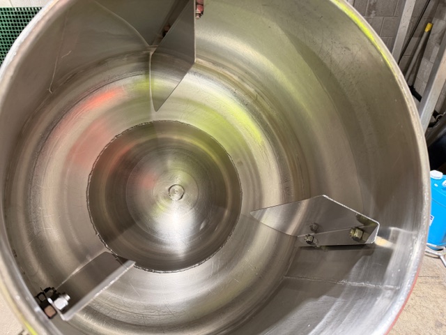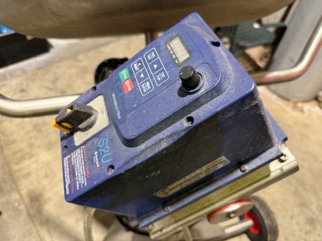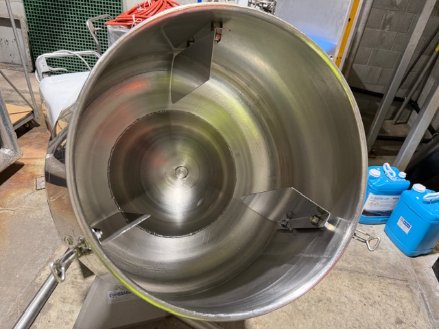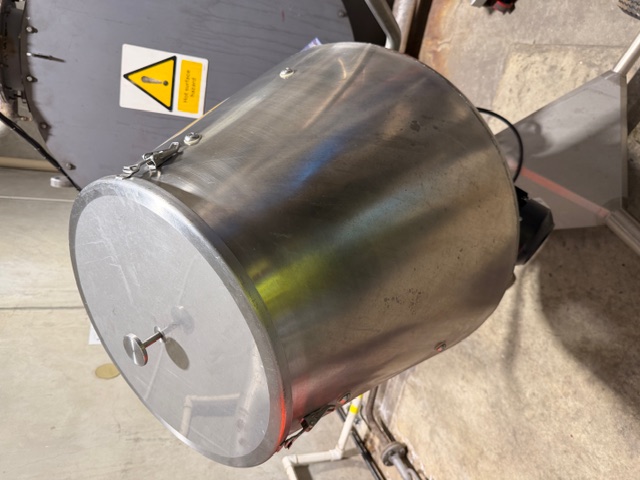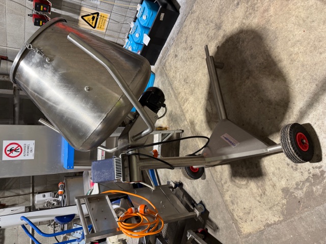 Stainless Steel Rotary Mixer, YOM 2022, made in Australia, single phase, variable speed, on pneumatic wheels, removable lid, internal baffles, tipping discharge, approx. 90L capacity. Unit has had very little use.