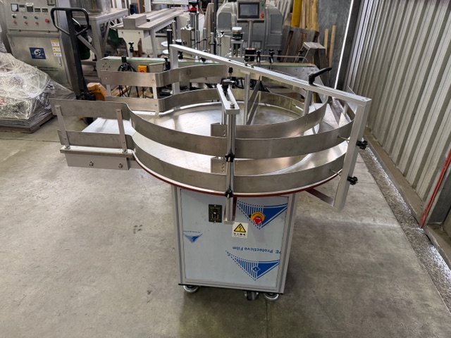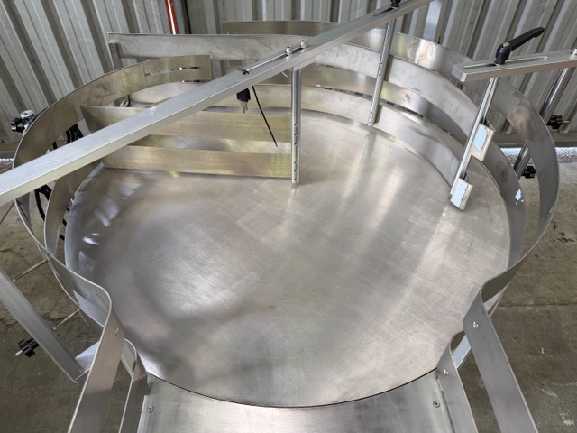 Gosumn Rotary Table for bottle/container unscrambling/accumulation, YOM 2019, stainless steel, single phase (needs new lead and plug), variable speed, has feet and wheels.