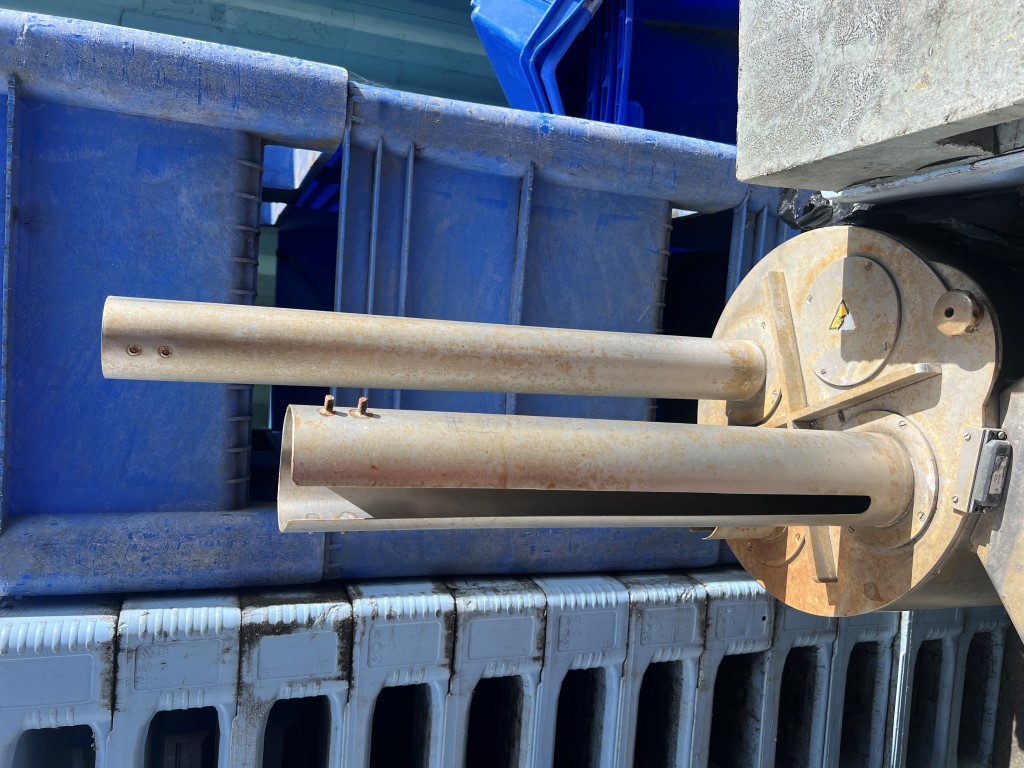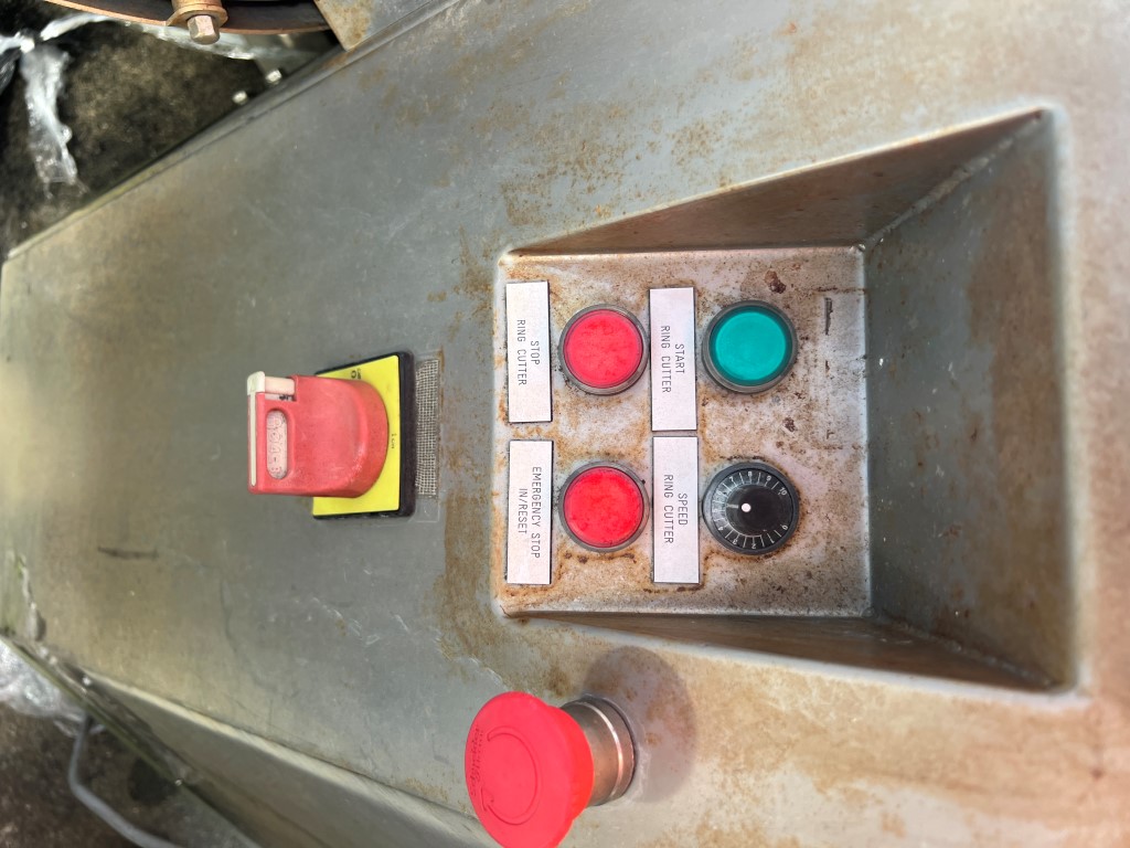 Dofra Ring Slicer/Cutter, 3 ph, 32amp plug, stainless steel, 2 tubes for infeed (approx. 100mm Ø and 85mm Ø). Ex vegetable ring cutter.