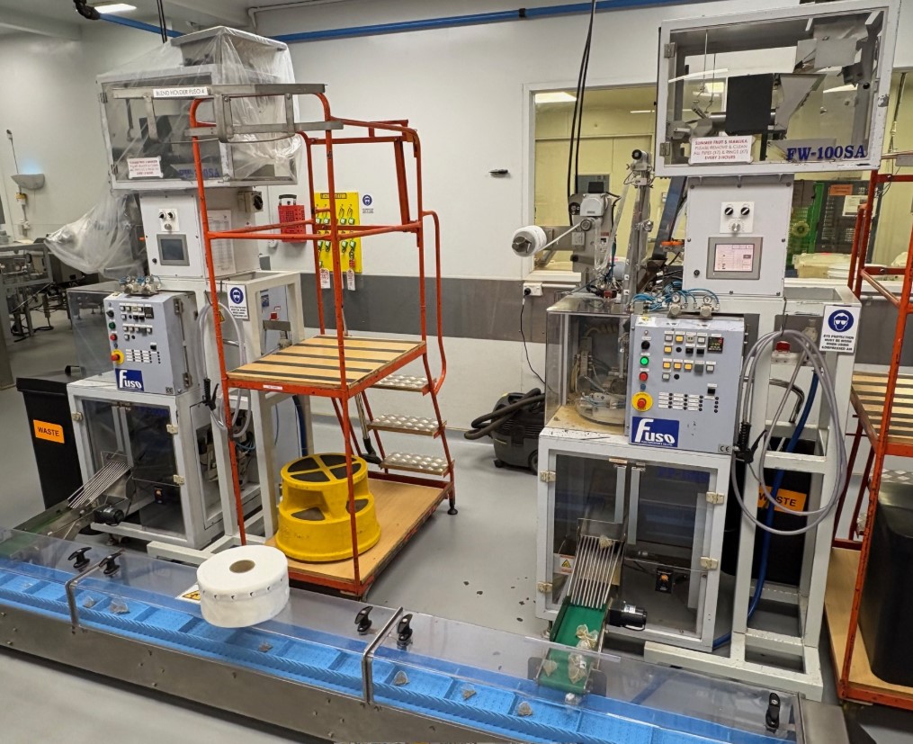 Stainless Steel Tank, single skin, half moon lids, on wheels, handle to steer and move tank around, central bottom outlet – approx. 55mm ID, tank int dims 1490mm ID x 1220mm H. Ex personal care/cosmetic product tank.