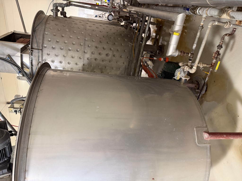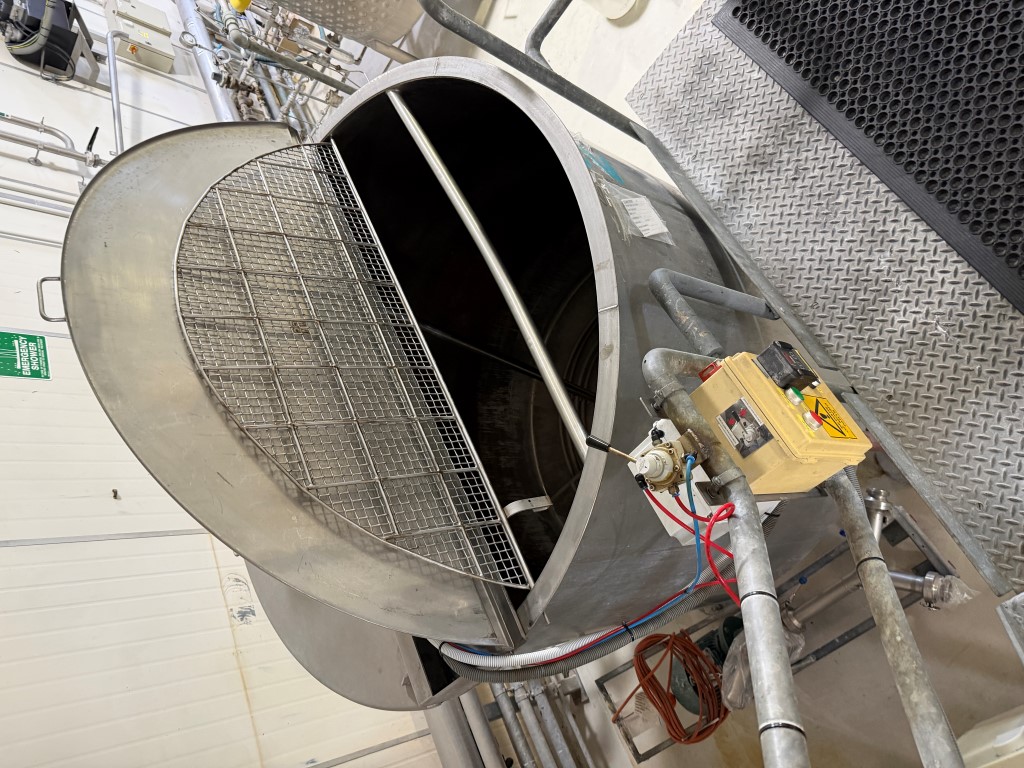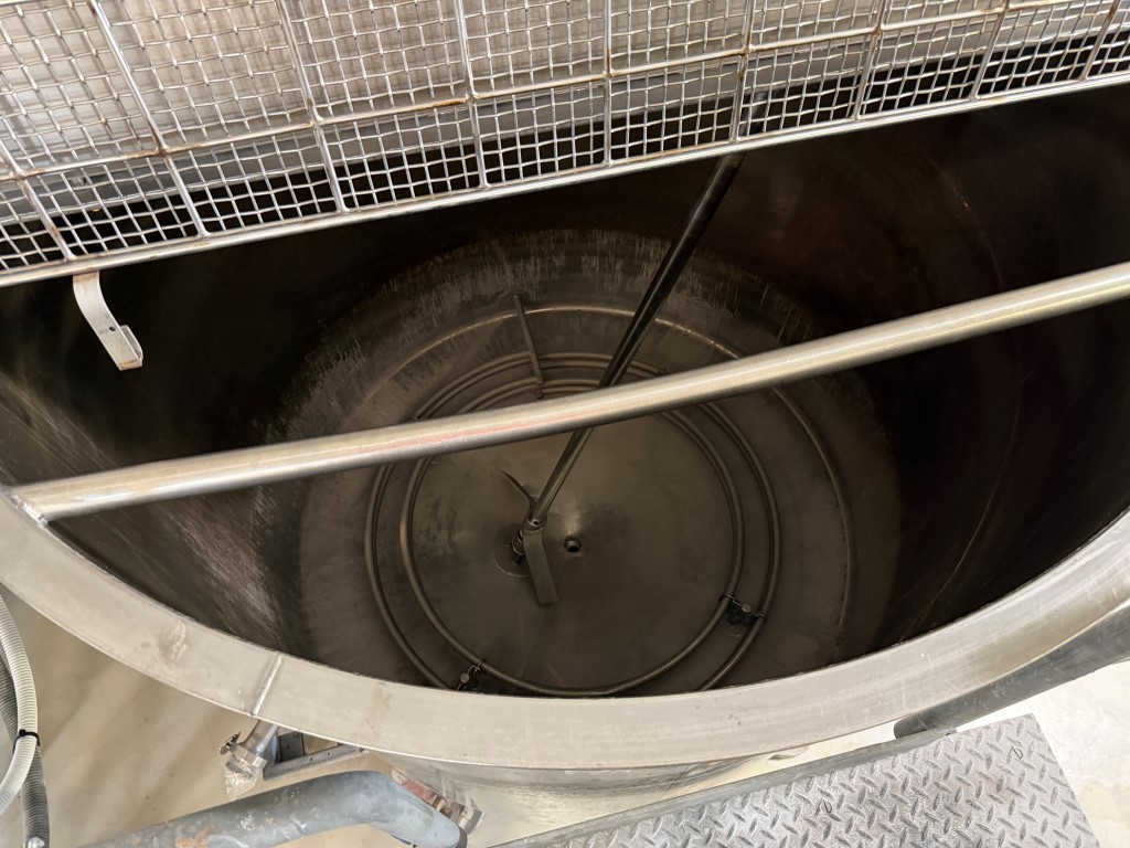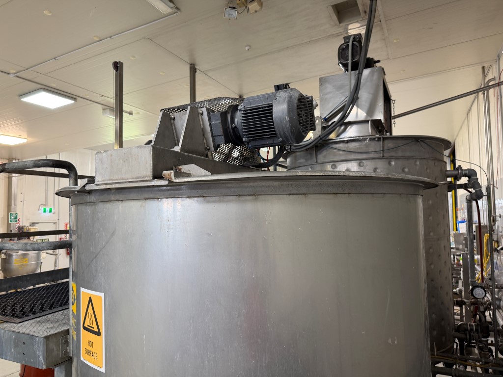 Stainless Steel Tank, single skin, steam coil in base, 304 stainless steel internals, 3 ph stirrer, 1.5kw 106pm motor, variable speed, pneumatic lid, safety mesh. Ex Cosmetic product tank. Available from second half of February 2026.