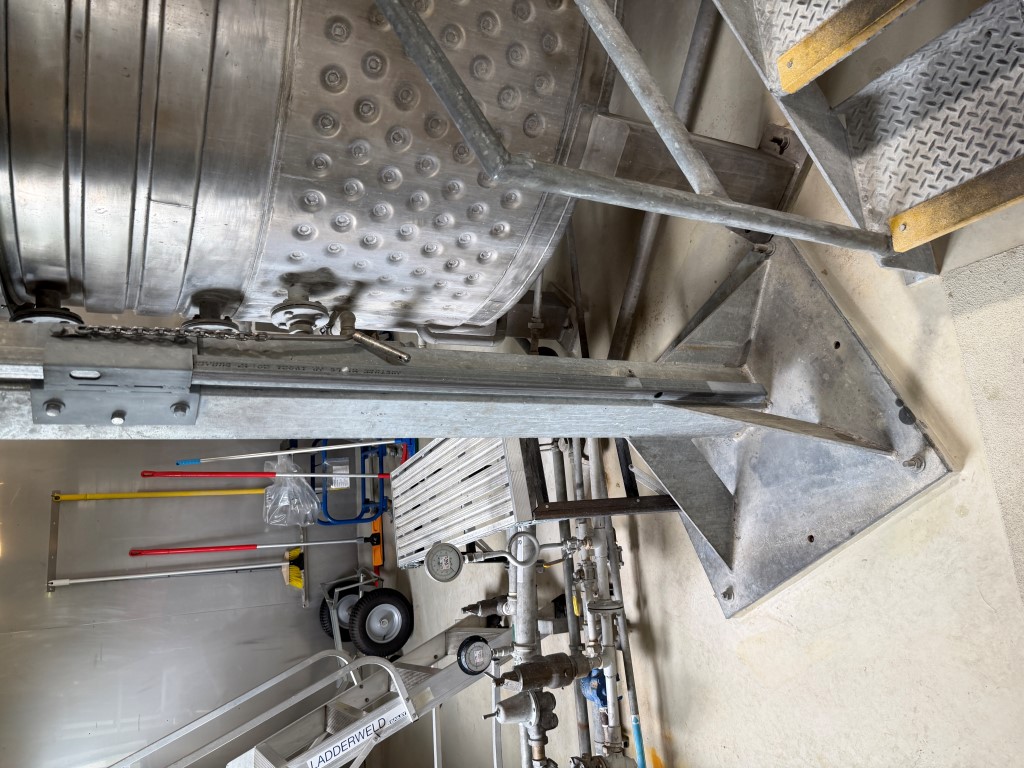 Approx. 2,000L, tank dims approx. 1900mm Ø x 3800mm H.