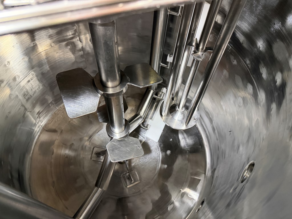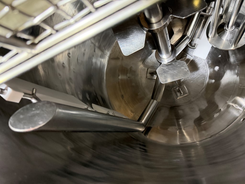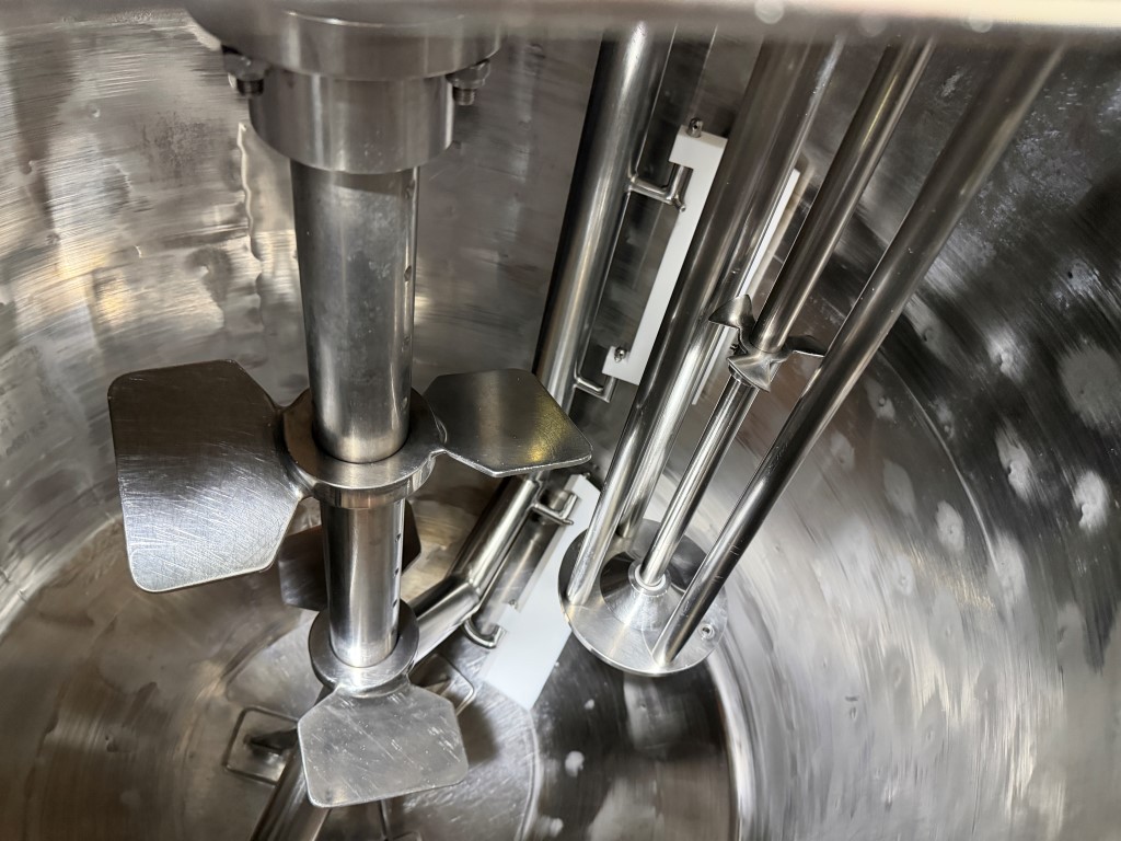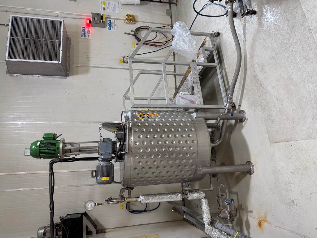 Stainless Steel Tank, with stairs/platform, steam jacketed and water cooled, 316 stainless steel internals, 3 ph scrape surface mixer, 1.5kw 30pm SEW motor, Silverson FX Batch Emulsifier on hydraulic lifter, variable speed, halfmoon lids, safety mesh. Ex Cosmetic product tank. Available from second half of February 2026.