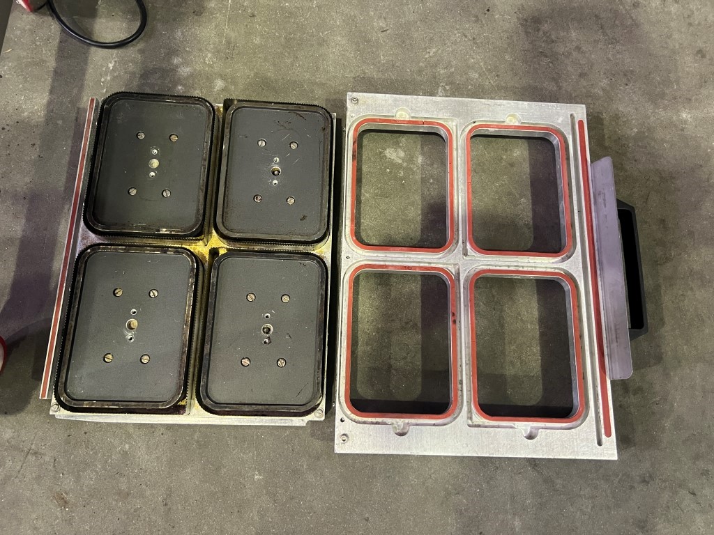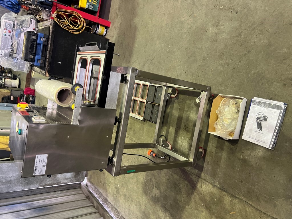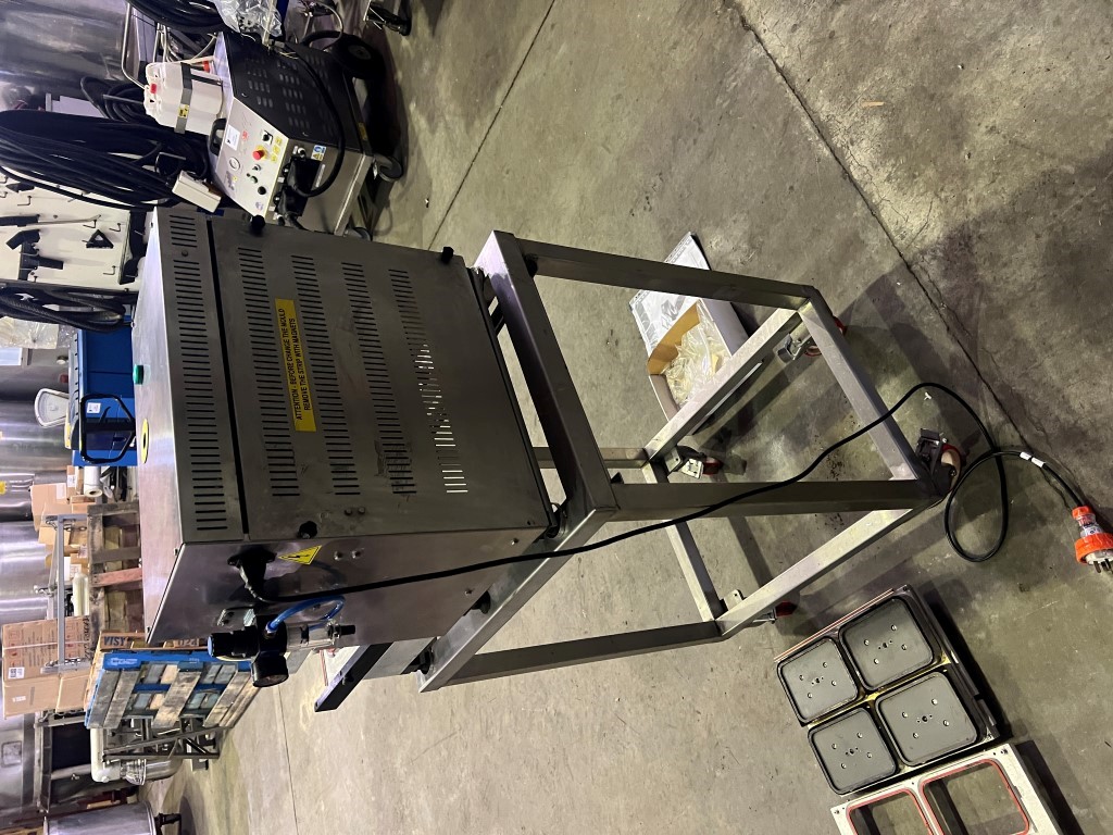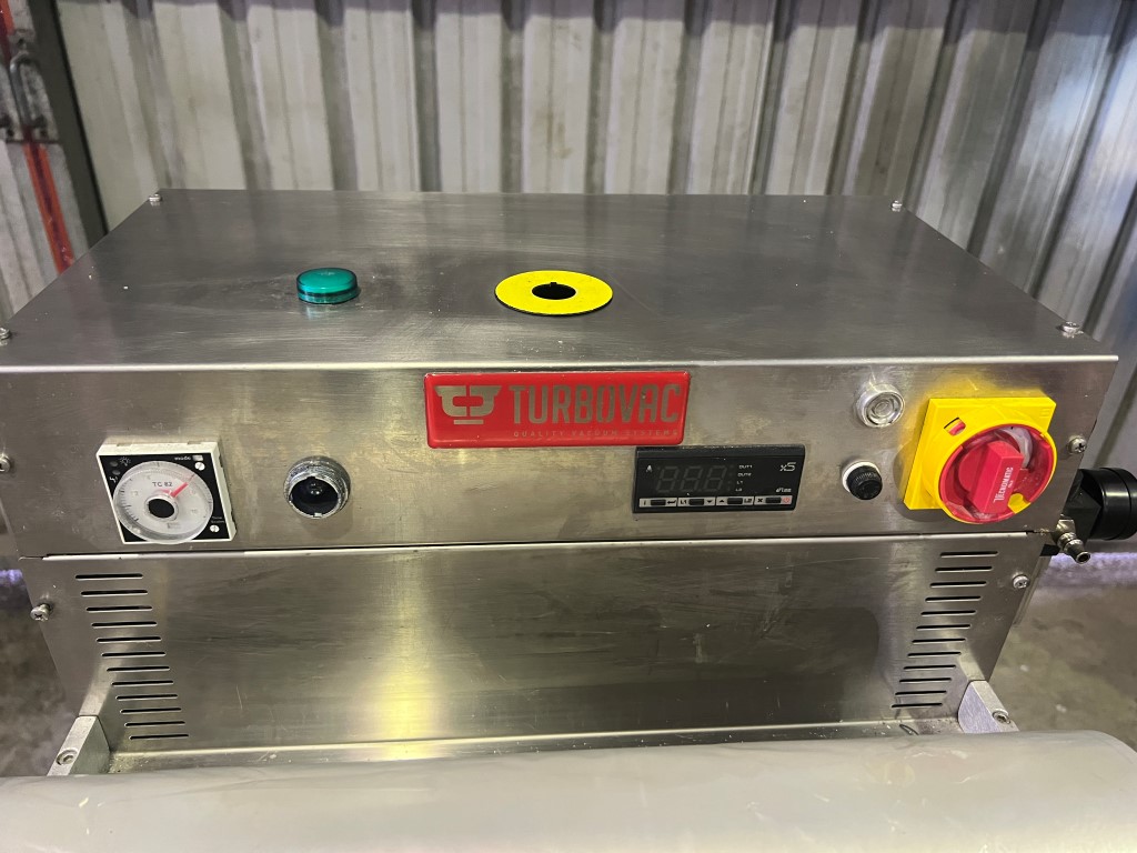 Turbovac TPS XL seal only Tray Sealer, YOM 2019, single phase, pneumatic, unit has 2 tray dies sets – one for 2 trays with tray size 260mm x 155mm and the other one is for 4 trays with tray size 180mm x 130mm. Requires new e-stop button fitted.