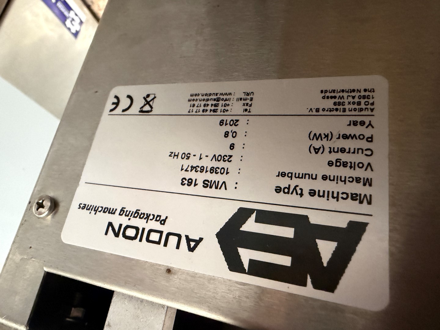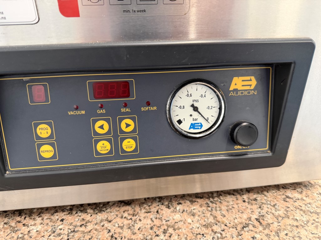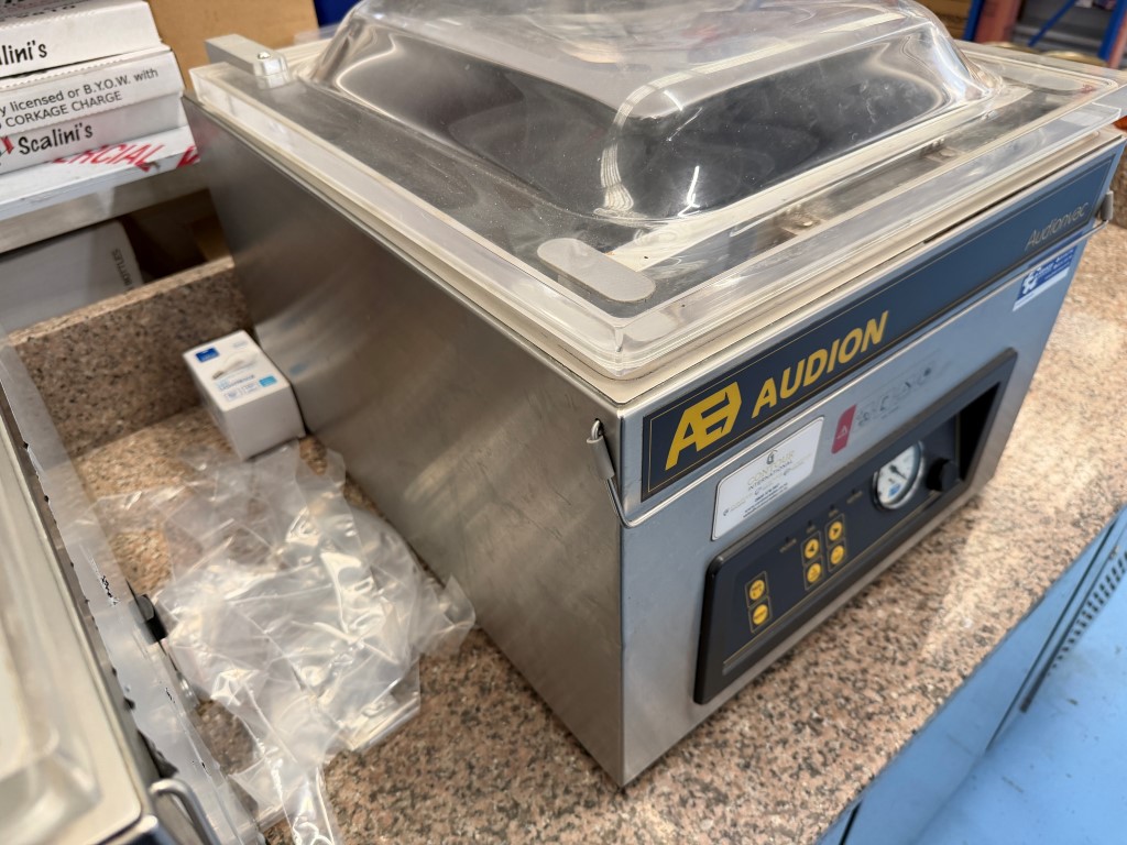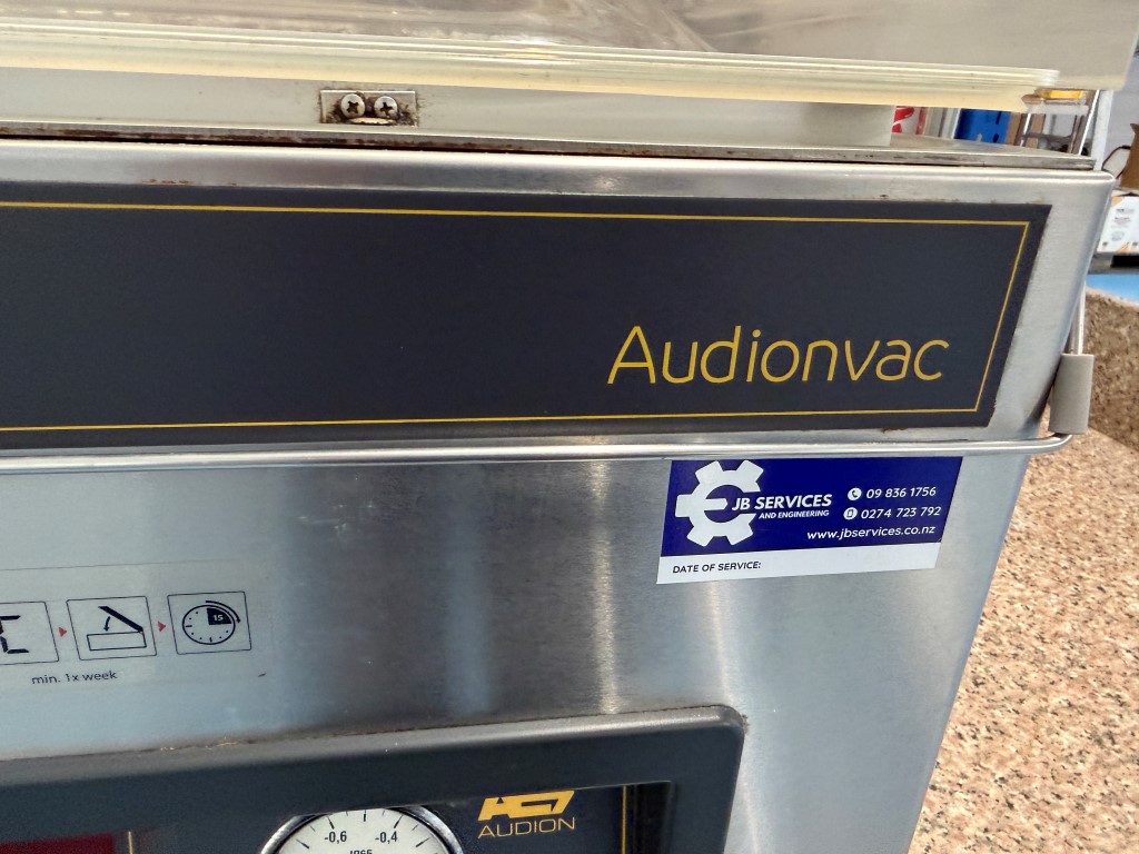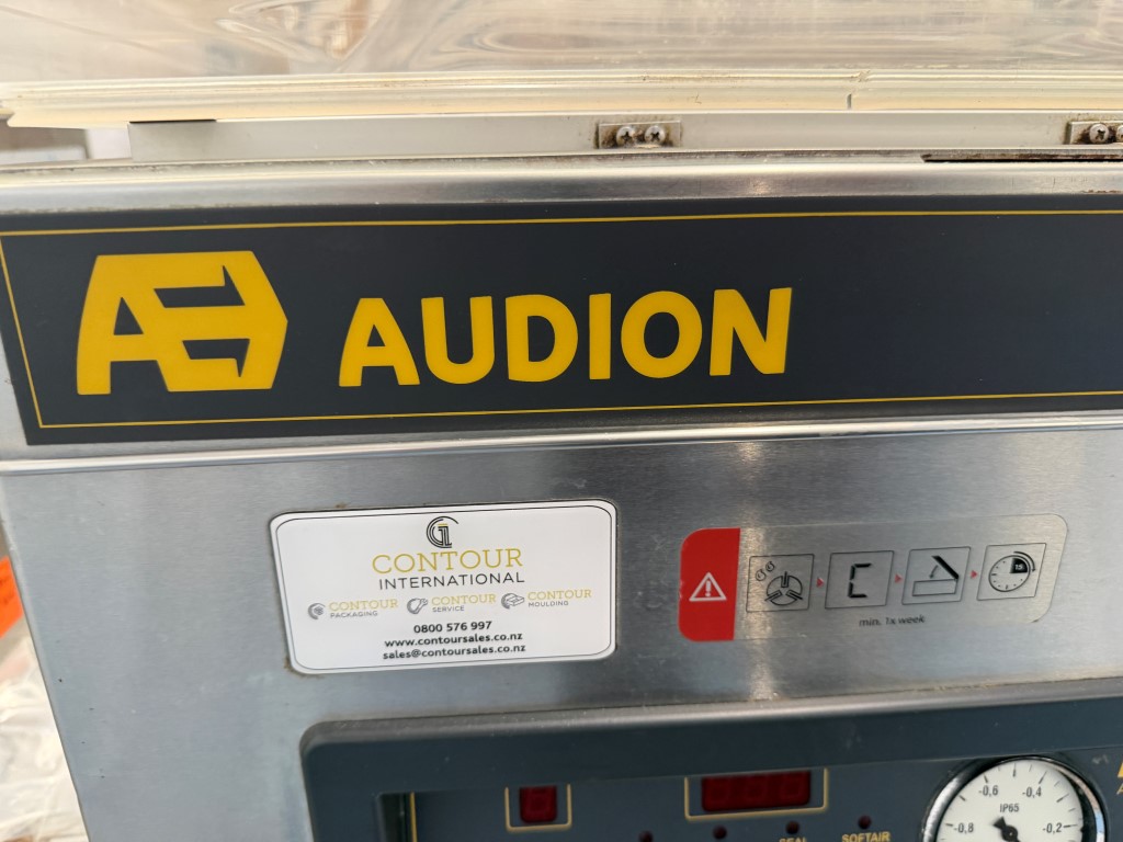 Audion VMS 163 Vacuum Packer, YOM 2019, single phase, bench top unit, seal bar approx. 410mm L. More info: https://www.audion.com/products/audionvac-vms-163. Not available until approx. end of April 2026.