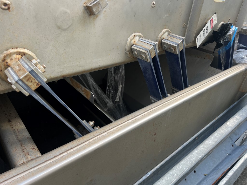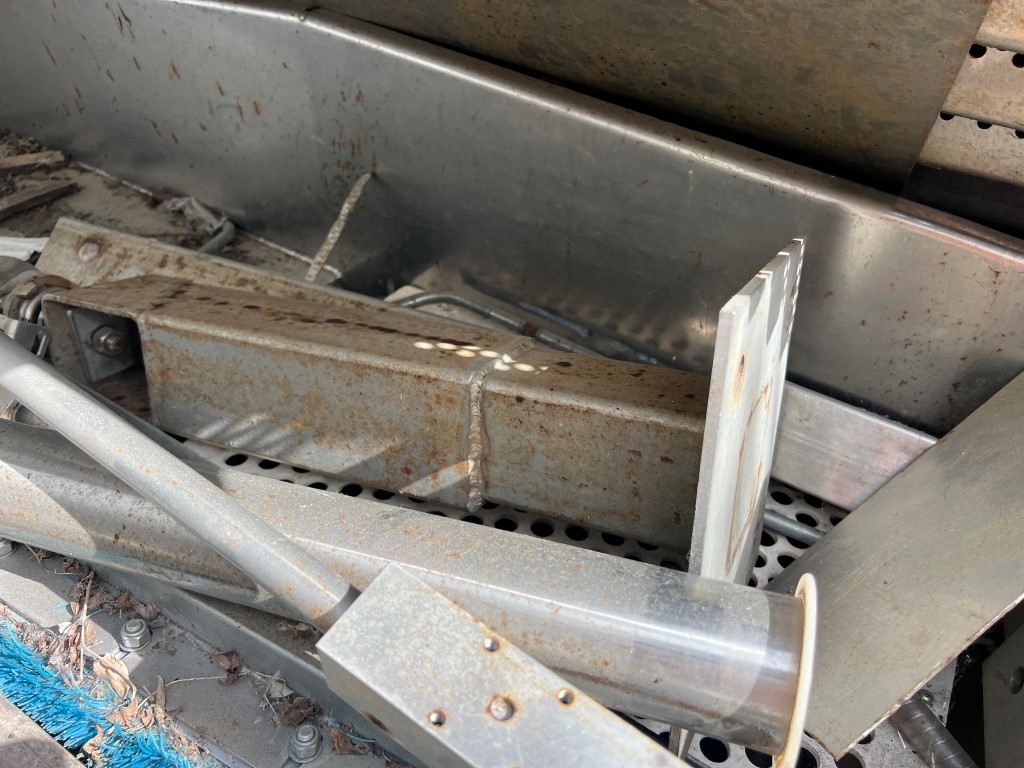 Key Technology Iso-Flo Vibratory Feeder/Conveyor, 3 ph, stainless steel, int dims approx. 605mm W x 3300mm L. Ex Vegetable unit.