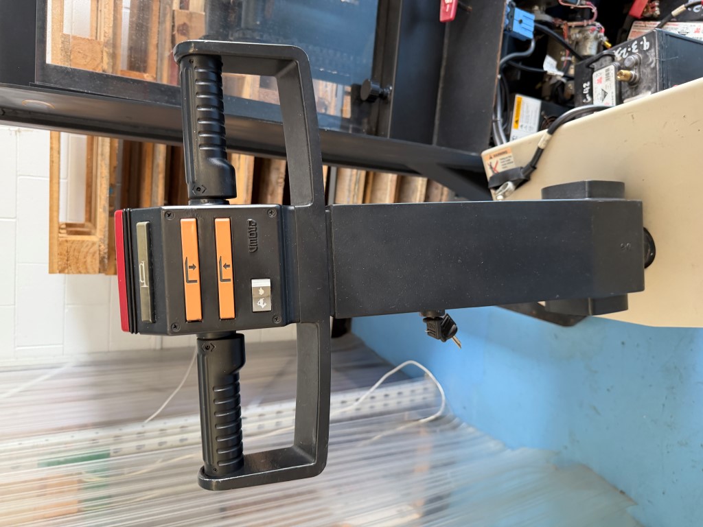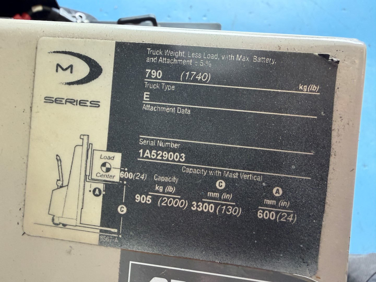 Crown M Series type E Walk Behind Forklift, 905kg lift capacity at 600mm load centre, 3300mm lift height. Has just had new batteries installed. Not available until approx. end of April 2026.