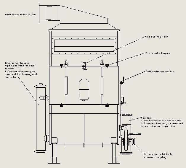 Dustex Model J834 “Aqua Dynamic” Wet Scrubber, YOM 2023, nominal airflow 0.7 m³/s, transport velocity 20 m/s average, 3 ph, 4kw direct drive fan. The air scrubber is a high turbulent type of air scrubber that utilizes the induced airflow through the scrubber to cleanse the entrained particulate from the process air stream. Includes operation manual and wiring diagram.